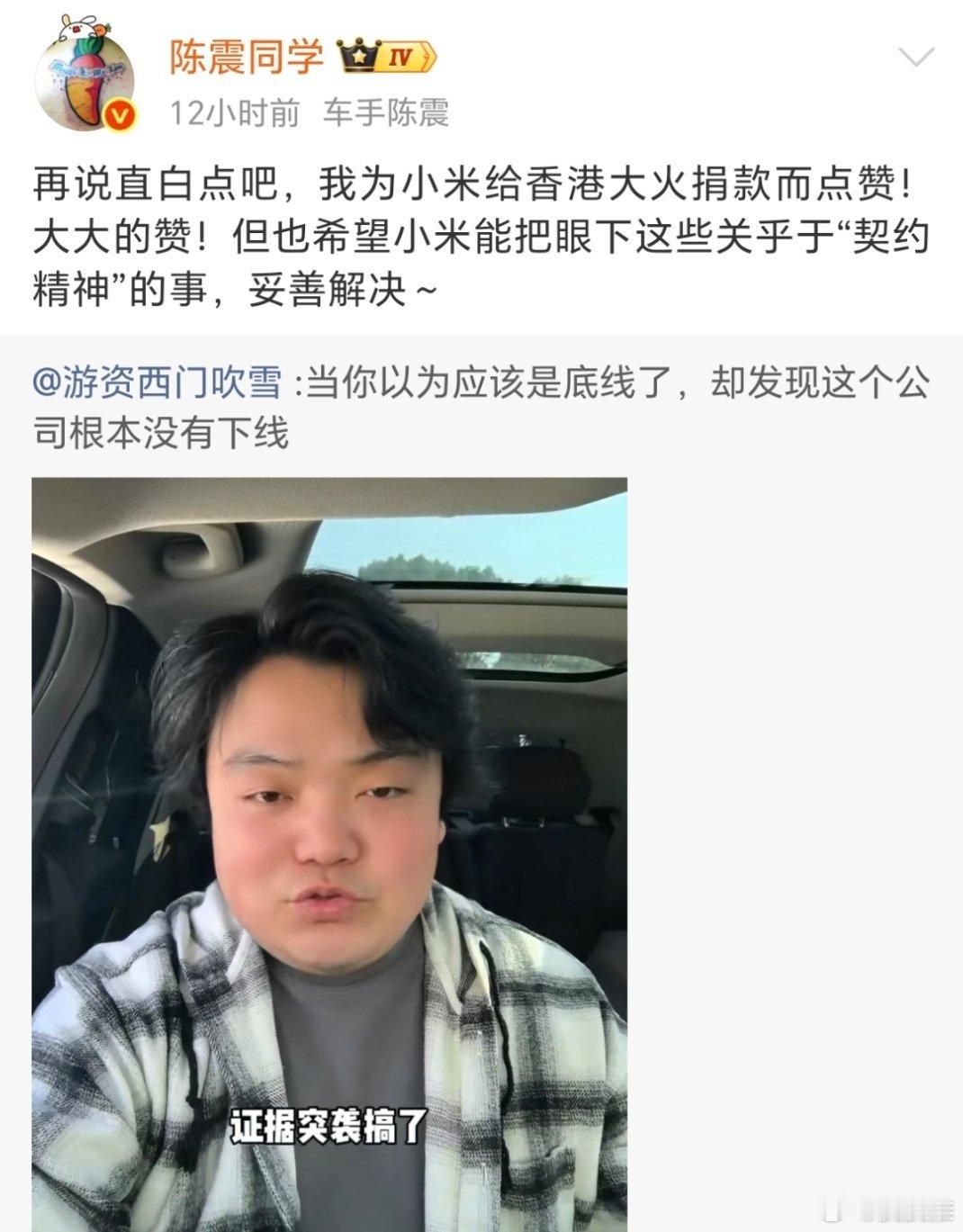 雷军回应小米汽车续航测试陈震和小米本来就没啥恩怨,他夸小米和批评小米也都是就事论事。作为头部大V,陈震并不缺流量,小米也自带流量,但总有些人却希望他们互掐起来,这才是妥妥的恶意引战、断章取义!科技先锋官