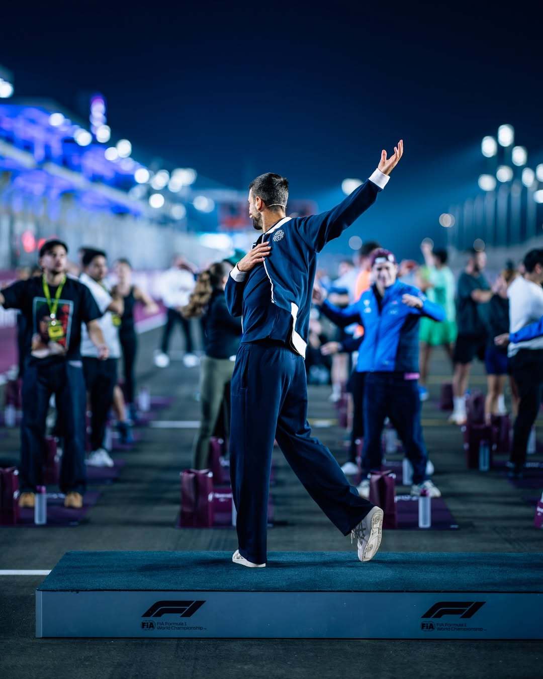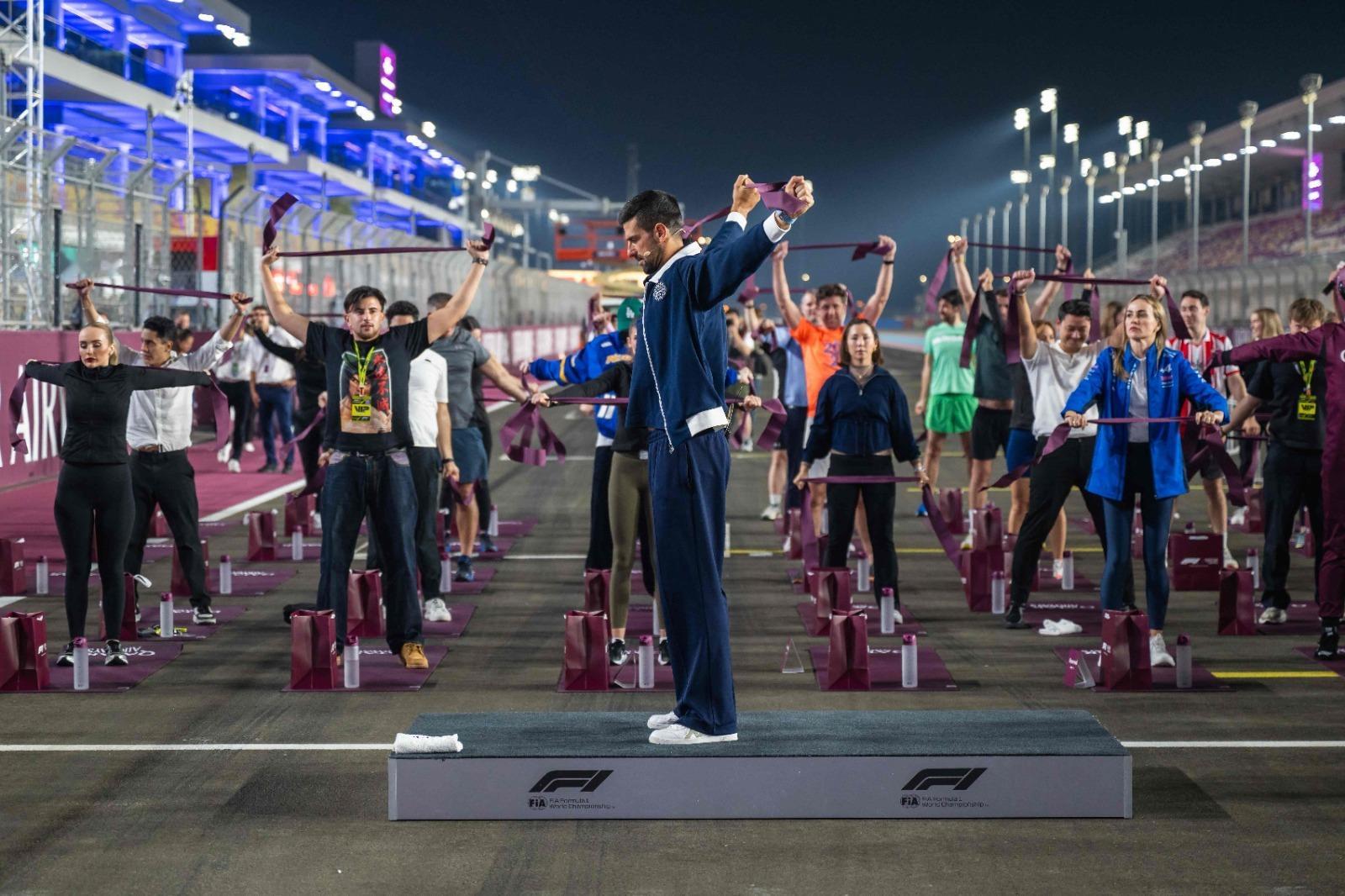 昨天卢塞尔赛道迎来一位贵宾-卡塔尔航空大使德约科维奇德约还在现场授课2025f1卡塔尔大奖赛
