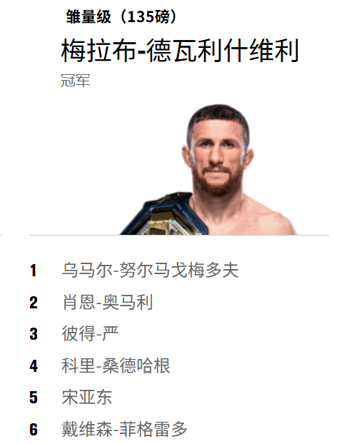 目前,宋亚东排名雏量级第5名,奥马利排名第2。
