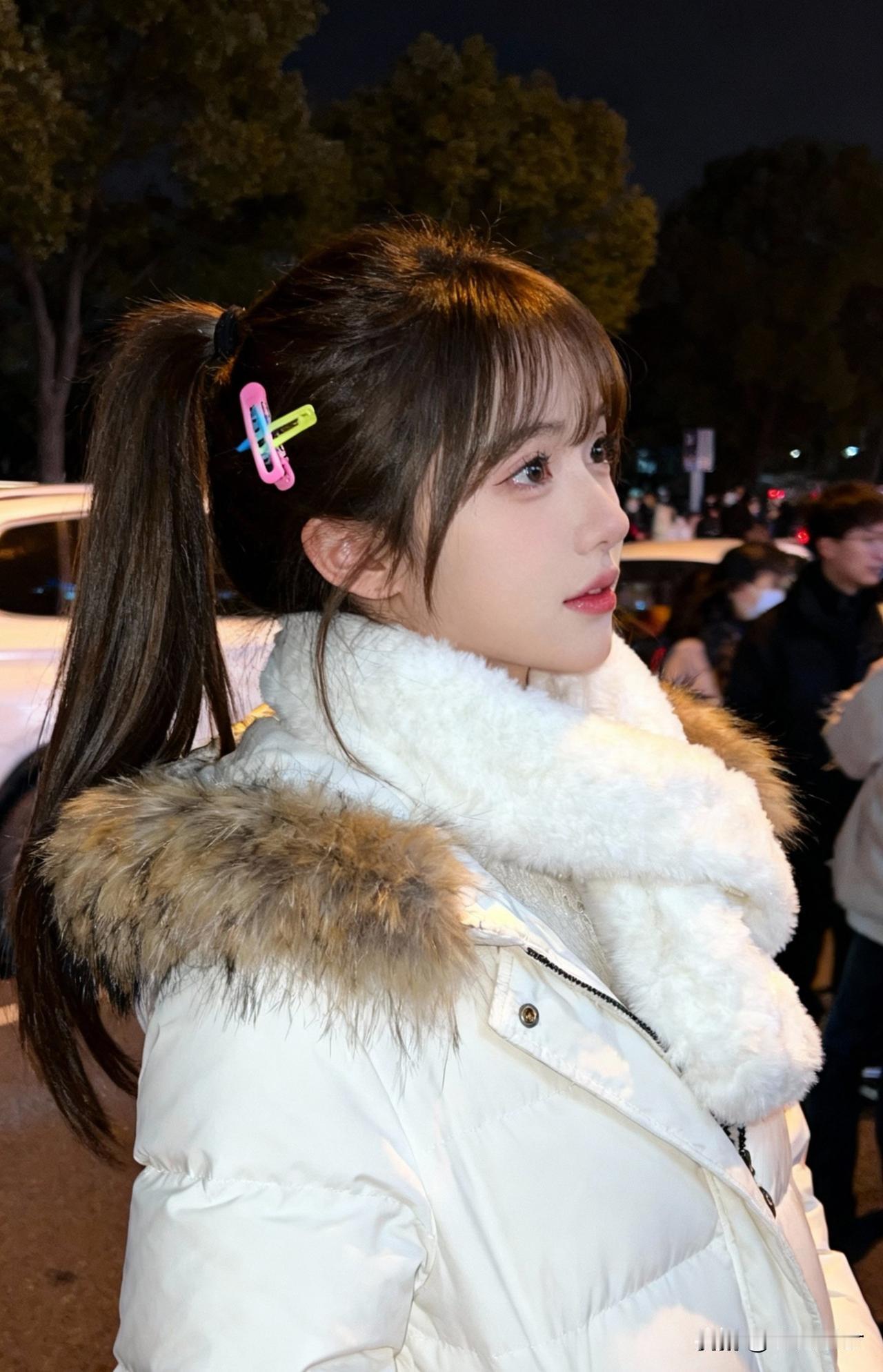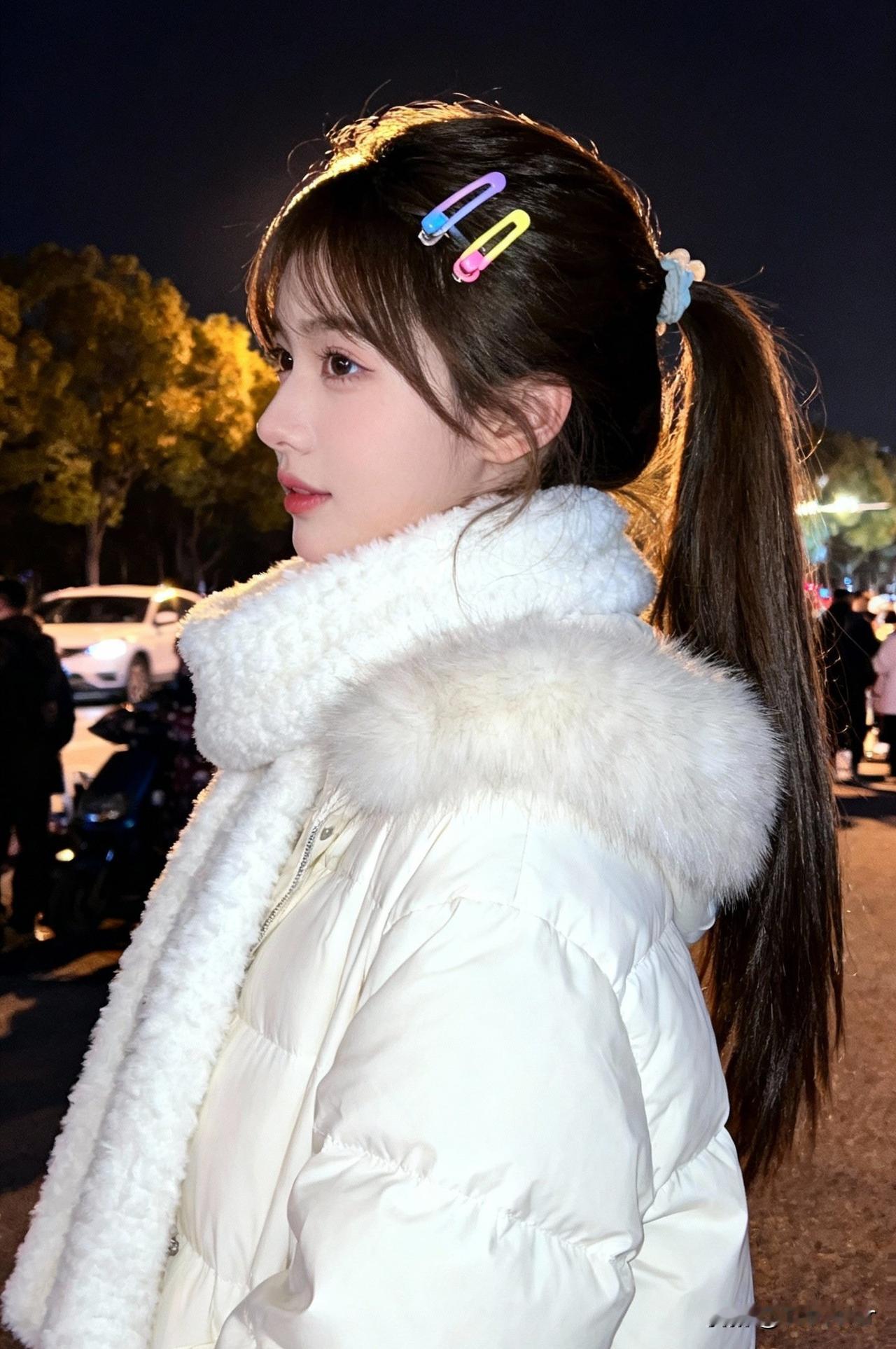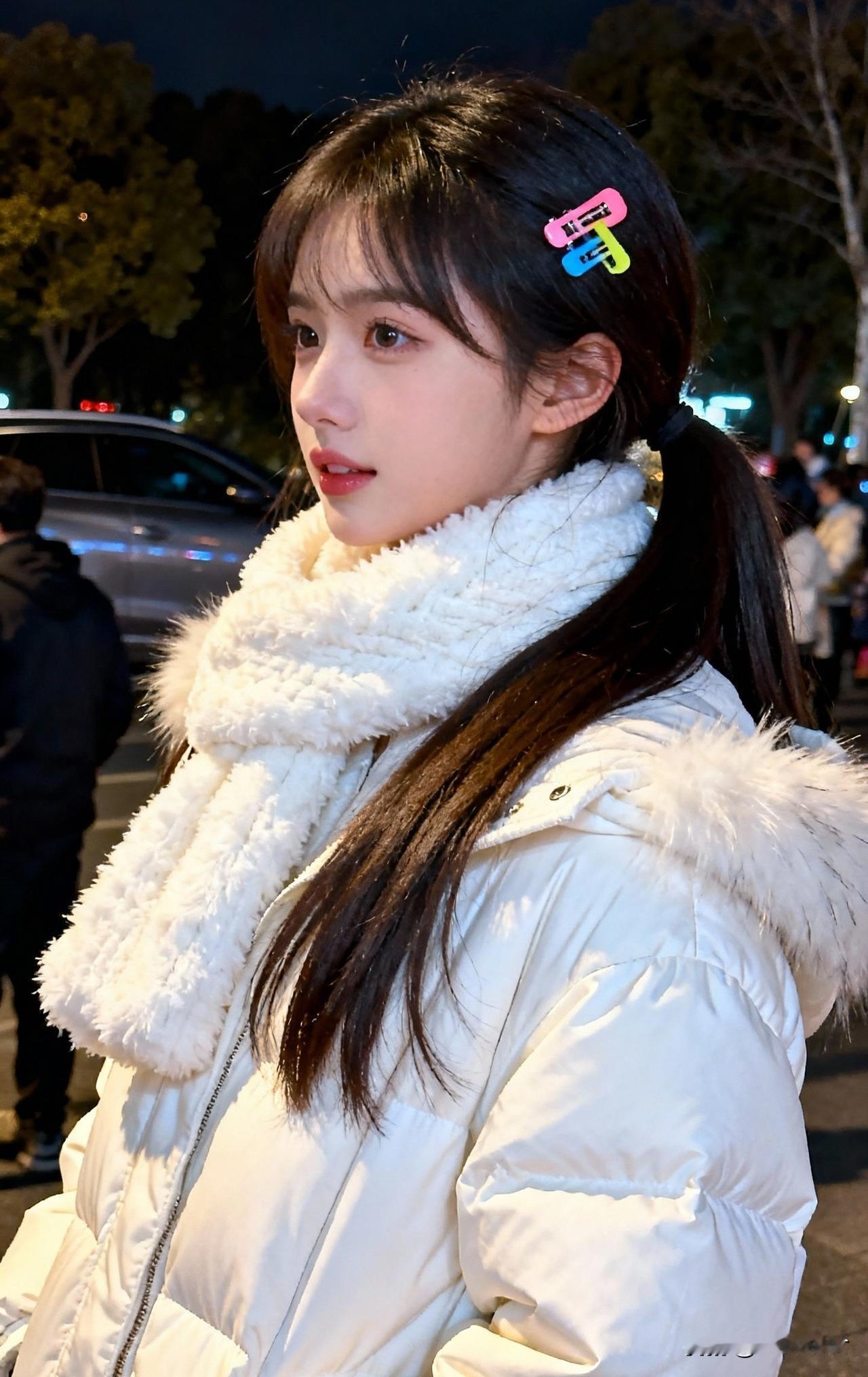 冬日暖阳下的甜美少女,毛绒外套与发夹的完美搭配,尽显温柔与俏皮。