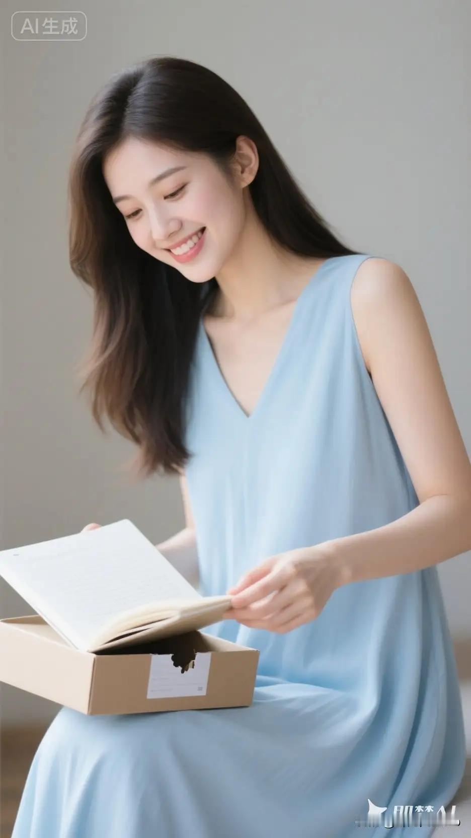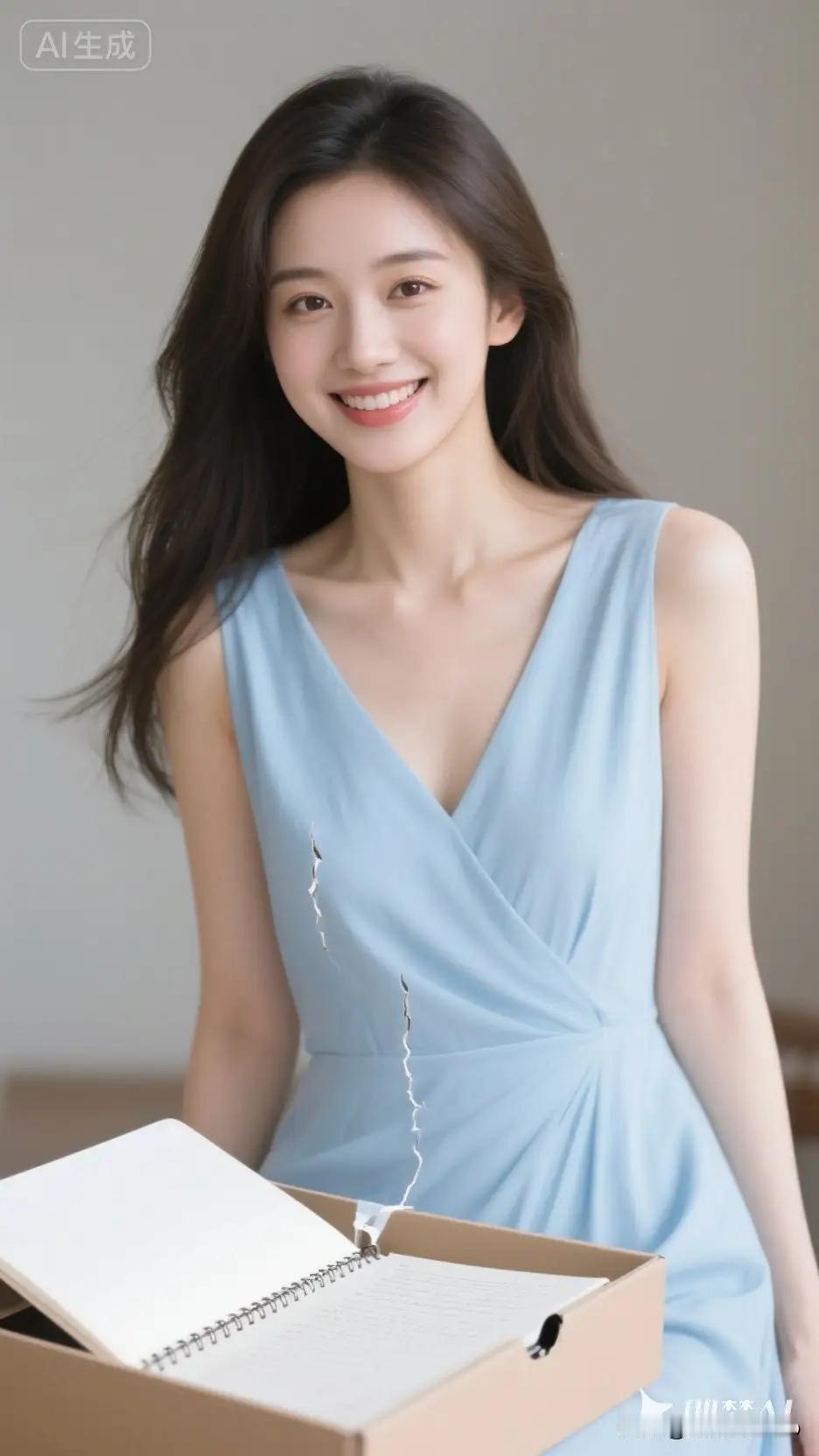 美女笑容太治愈了!她身着浅灰无袖针织连衣裙,竖纹肌理勾勒出优雅曲线,简约版型衬得