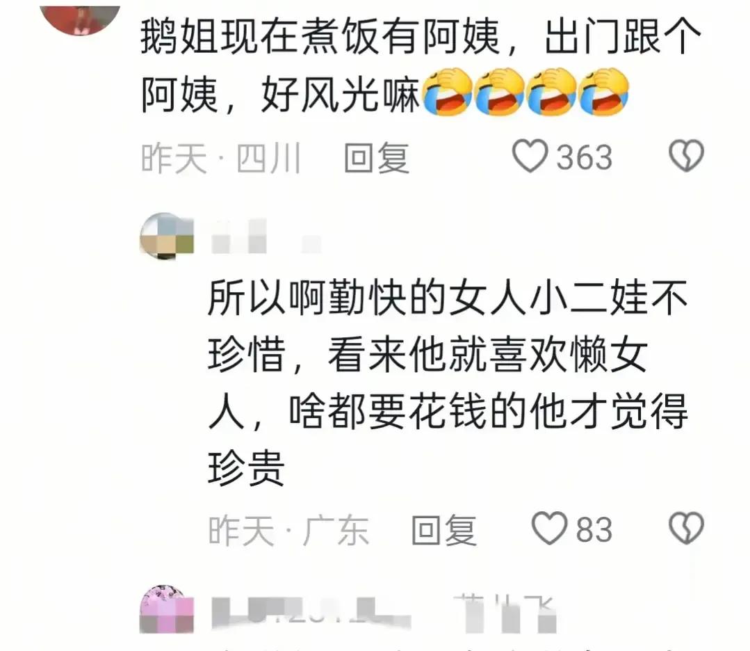 小妹儿开直播说想复合,还提出要重新分财产,弹幕瞬间炸锅。 我刷到回放才搞明白,这对曾经拍农村日常的网红夫妻,分居后儿子小成成跟着爸爸小二娃过。 前几天小二娃把带娃阿姨辞了,换成亲戚鹅姐,鹅姐带娃去超市被路人拍到,娃头发乱衣服大,网友一看就心疼妈。 小妹儿顺势喊话想自己带,话里话外还惦记账号收益。 有人刷礼物支持妈,也有人骂两人拿三岁娃当流量道具,评论区吵到飞起。 我看直播里娃被镜头怼脸,还在笑,压根不知道大人世界多吵。 当爸妈的先把戏演足,孩子却连稳定照顾的人都保不住,这瓜吃得心里堵。 网红离婚可以互撕,别把孩子摆到镜头前当证据。 娃需要的是安稳,不是热搜。