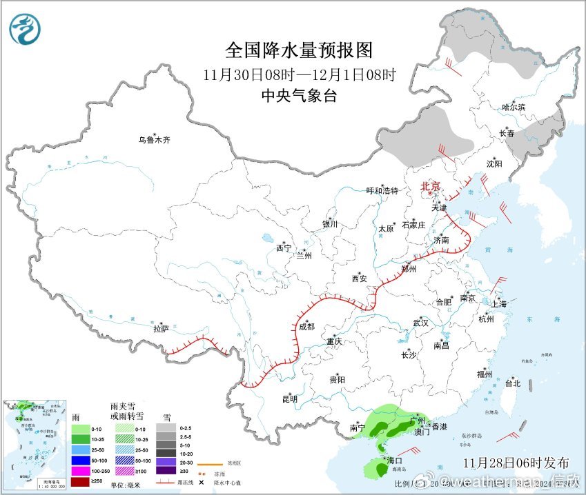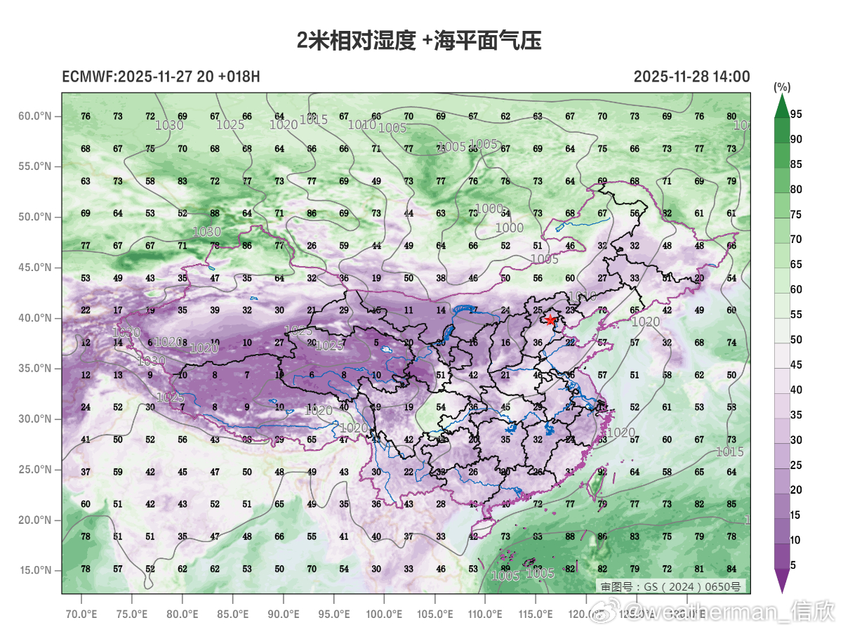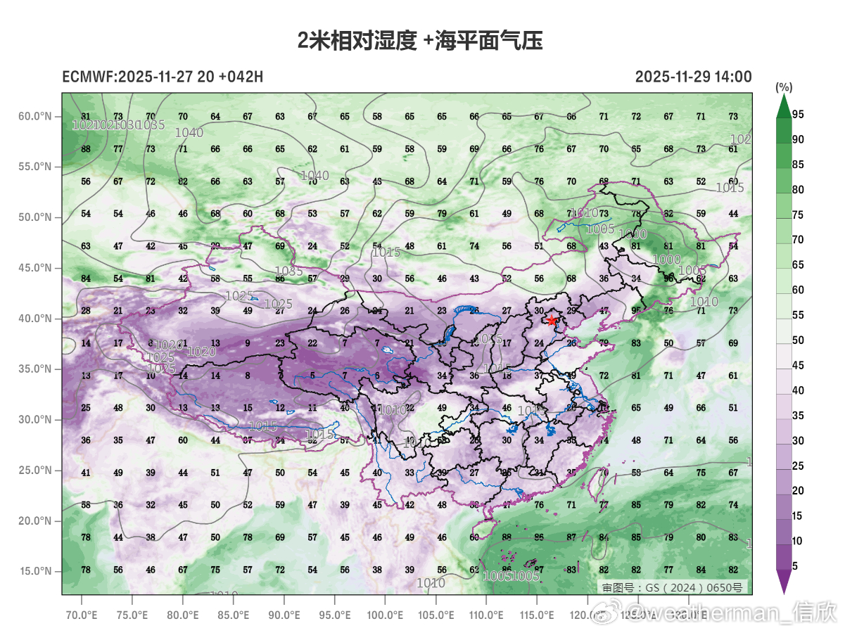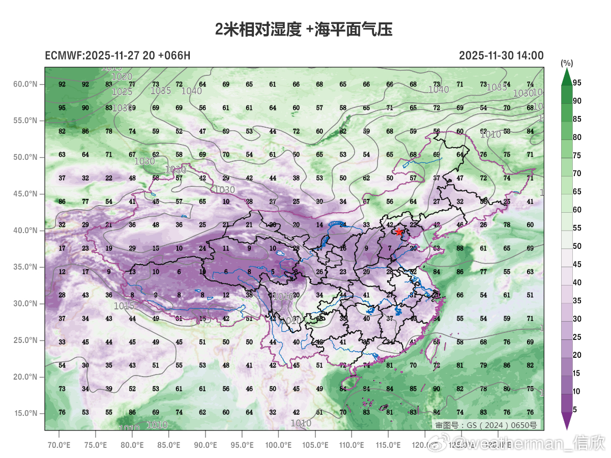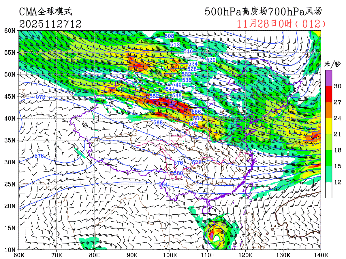 【降水和干燥】昨天到今晨,我国降水总体依然稀少,海南西沙因为受到台风天琴影响,出现了中雨。此外东北东部和山东半岛也出现了一些雨雪。今后3天我国大部地区继续受到高空西北气流影响,依然是晴朗干燥的天气为主,今天07-08时单小时降水量榜单,只有4个站点,凑不齐10个。不过今晚-明天,内蒙古东部和黑龙江的降雪会发展加强,多地可能出现中到大雪,局地暴雪。此外华南地区在11月30日降水也会发展增多。而青藏高原到华北平原一带,今后3天越来越干燥。数值预报给出11月30日下午,山西、河北部分地区,相对湿度可能低于10%,要格外警惕火灾的发生。