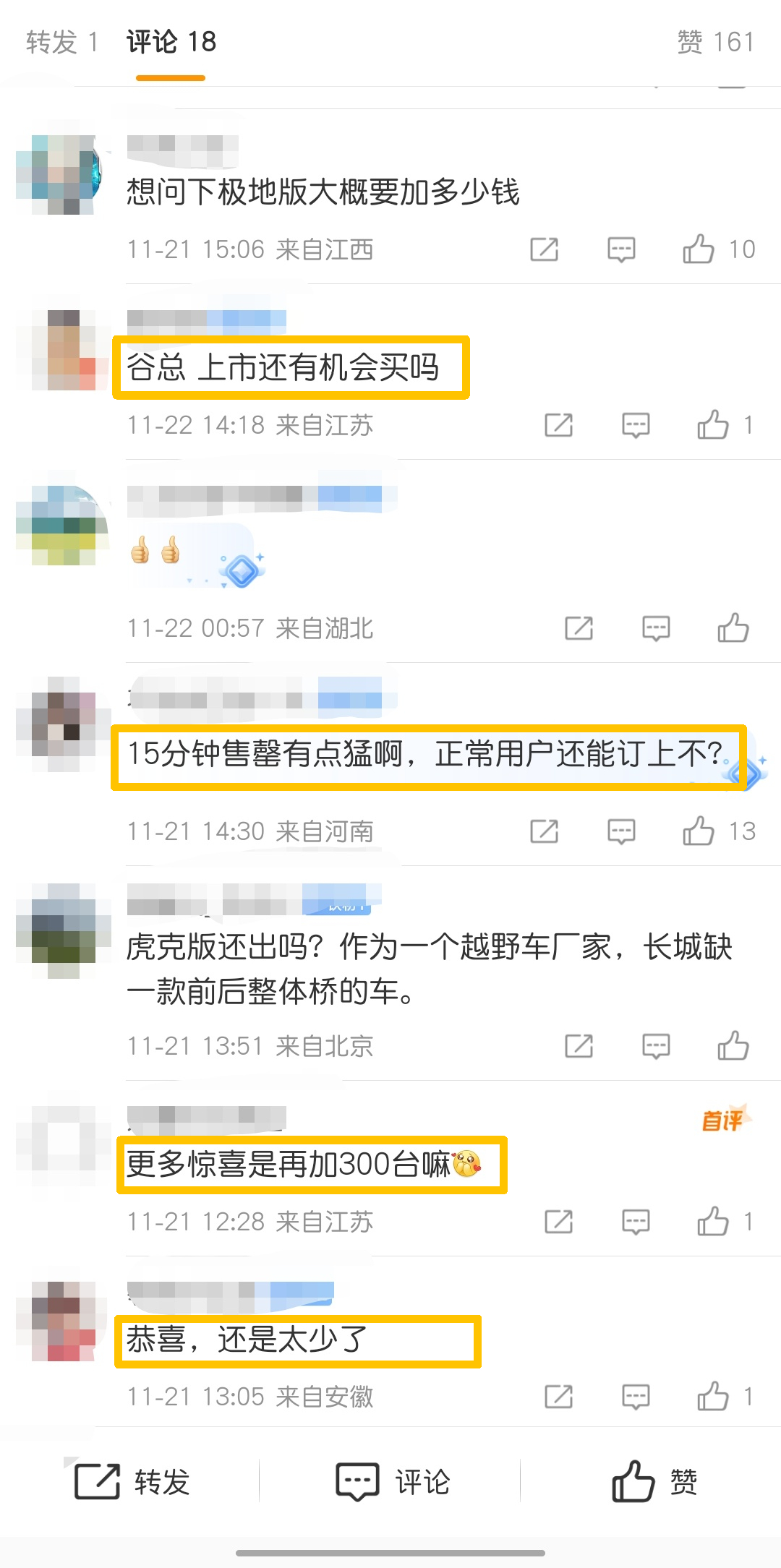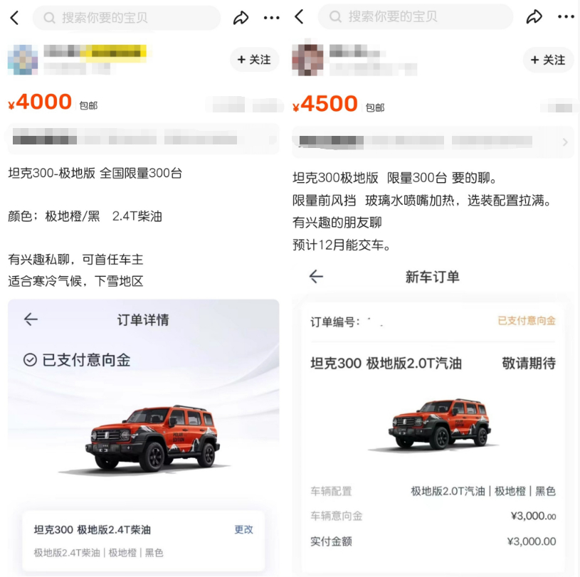 广州车展上,300台共创坦克300极地版 15分钟即售罄,我们真切地感受到了大家伙儿的需求和热情!评论区有不少网友纷纷反馈没抢到,转而通过二手交易平台找转卖订单。在此,提醒各位注意财产安全,谨防上当受骗。没抢到的朋友先别着急,可以去当地坦克经销店登记候补,后续如果有退订空额,我们会按实际情况释放,预订权益照样享。从长城车到长城站坦克300冠军座驾坦克300中国南北极考察选用产品