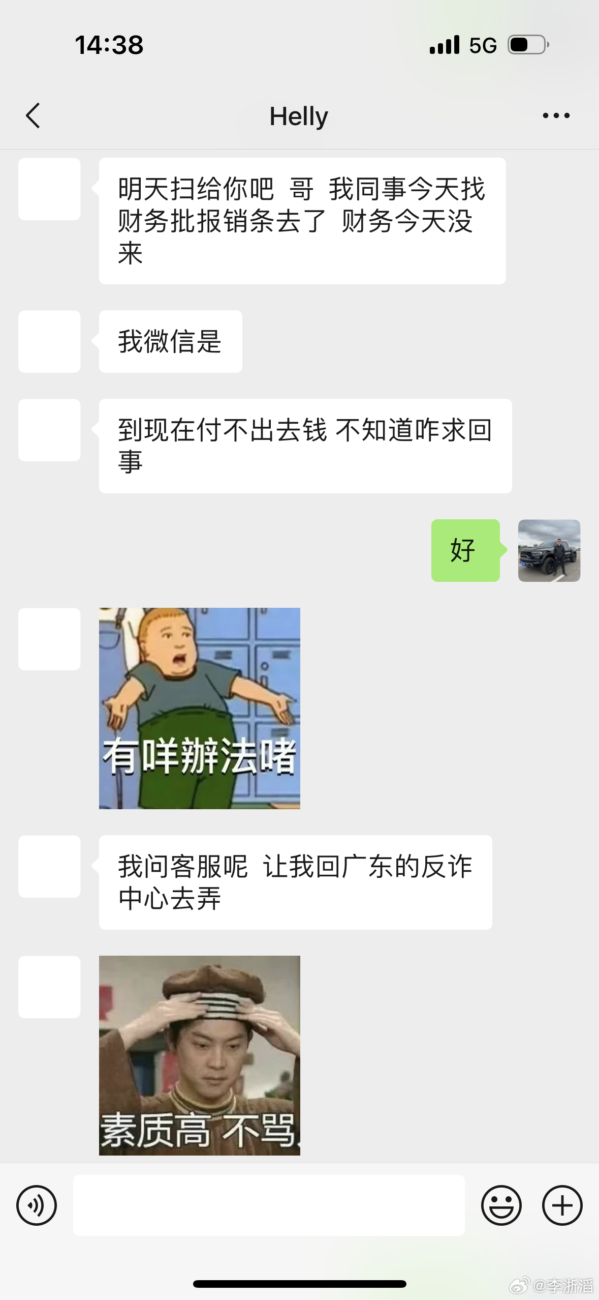 前几天在西安定了一台 W222的S320中介给联系的 我付了2000定金派人去了 人还没到西安 中介告知我 车主拿假手续骗了他 但他给车主已经垫付车款了 现场报jing了 所以这车没办法卖 我还挺可怜他 他也挺够意思说把定金退给我包括来回路费 我说可以 你先处理事情吧 但是一直没给我转微信就不回复了 过了好久说手机坏了 刚换一个手机 后面又说让他同事给我转 过一会又说财务不在 一会又说 反zha中心 控制了 需要他本人去核实 一大堆 你们自己看吧…..2000块钱也骗吗??? 你要骗就直接骗 不用走流程 编故事情节