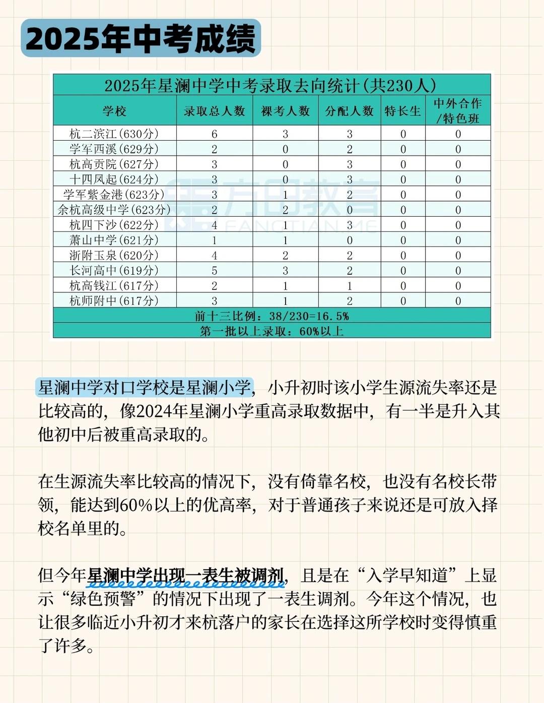 星澜中学2025年中考成绩及一些讨论 今年星澜中学出现一表生被调剂,且是在“入学早知道”上显示“绿色预警”的情况下出现了一表生调剂。据了解,学校录取300名学生,实报400名学生,而在星澜中学学校网查询,初一预设置14个班,因老师不足只设置了8个班。 对于这所学校,你怎么看?欢迎评论区留言分享~ 择校 教育规划 升学规划 中学 全国中小学 中考志愿填报 中考成绩 杭州