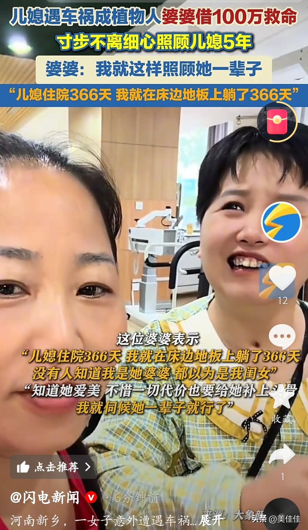 他们不是母亲和女儿,是婆婆和儿媳!儿媳出车祸成植物人,婆婆寸步不离照顾了5年! 儿媳遇车祸成植物人,婆婆眼都没眨,花光积蓄又借100万救命,住院366天,她就在病床边地板躺了366天。别人都以为她是亲妈,她却笑着说“我就是伺候她一辈子的”。知道儿媳爱美,再难也要给她补头发;喂饭擦身、陪聊按摩,五年没松过手。 哪有什么“婆媳天生是天敌”?不过是有人把“外人”当成了自家人,把“责任”过成了真心疼。这不是剧本里的感动,是烟火里的实在:你拿我当闺女疼,我拿你当亲妈守,日子再难,暖的是人心。