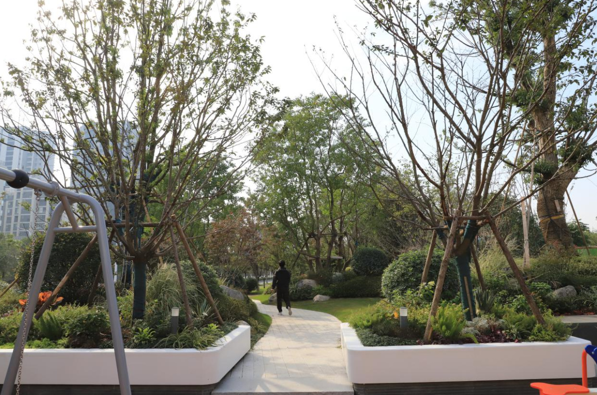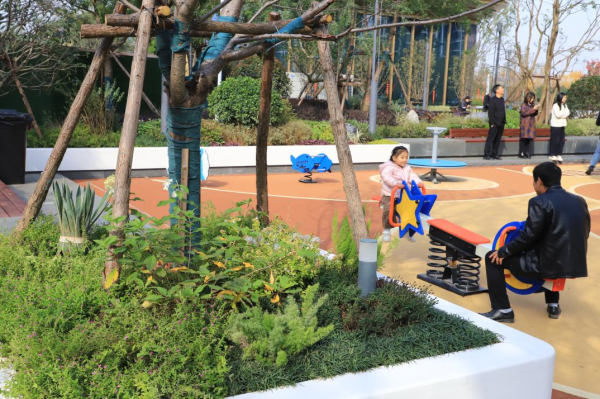 同时,该区坚持“一园一品”理念,突出每个公园的独特定位与景观风格:听澜园以见义勇为为主题,将精神文明建设元素巧妙融入生态景观之中;壹品春园、壹品冬园通过景墙装饰、特色铺装等设计呼应季节主题,为市民带来差异化的游园体验;西棠园聚焦景观绿化提升,精心构建四季有景、步移景异的生态空间。此外,各口袋公园均完善了配套设施配置,全面配备休闲座椅、照明系统、浇灌设备等便民设施,部分公园还增设了文明宣传栏,实现了生态功能与文化传播、便民服务的有机融合。