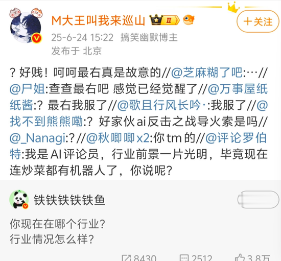 微博方面透露,评论罗伯特每天大约要生成百万条AI评论,且专挑粉丝数只有几百人的微博普通用户,追求给很多情绪低沉的用户以心理抚慰。