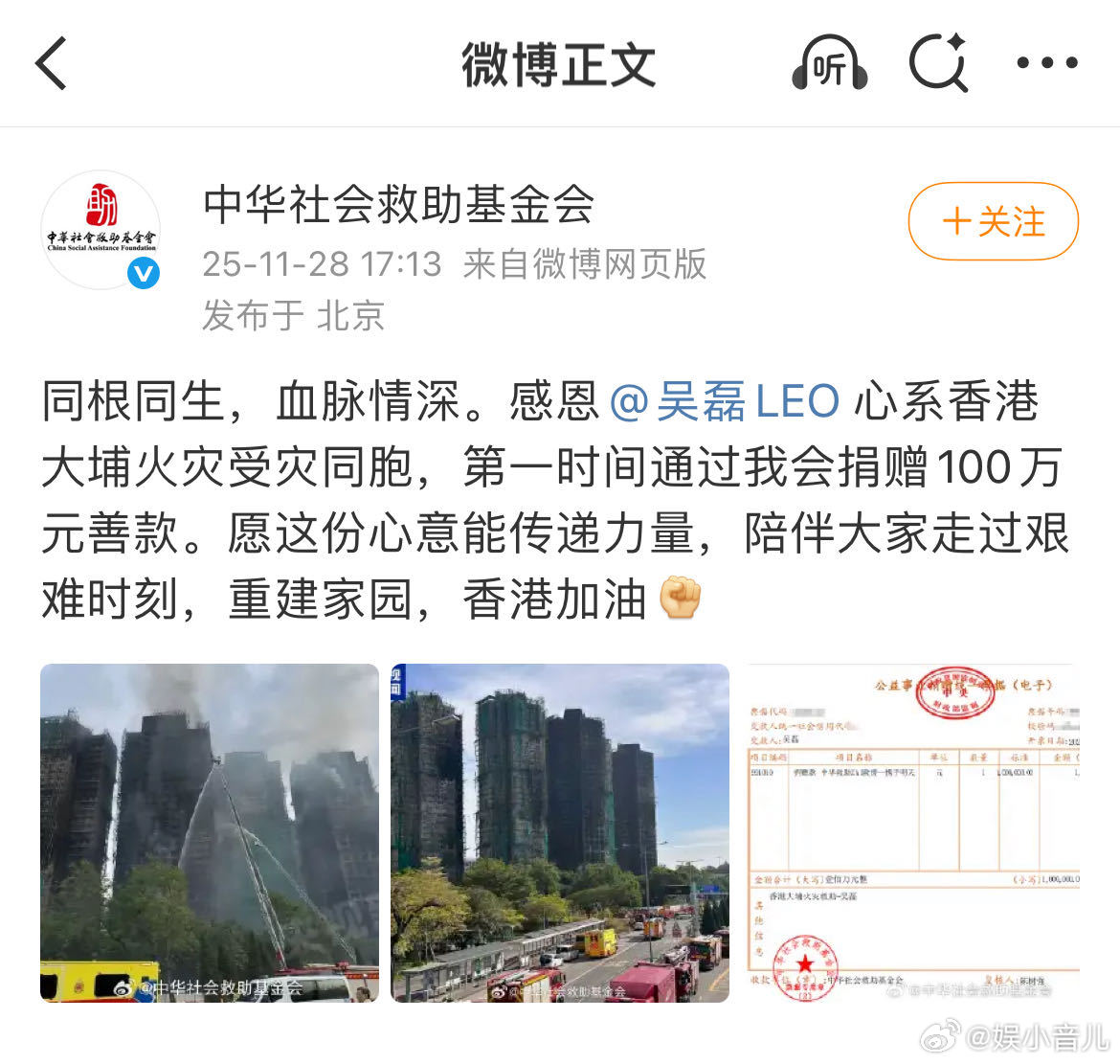 吴磊向香港捐款100万吴磊真的是个很善良的人!一方有难八方支援,大家团结一致共克