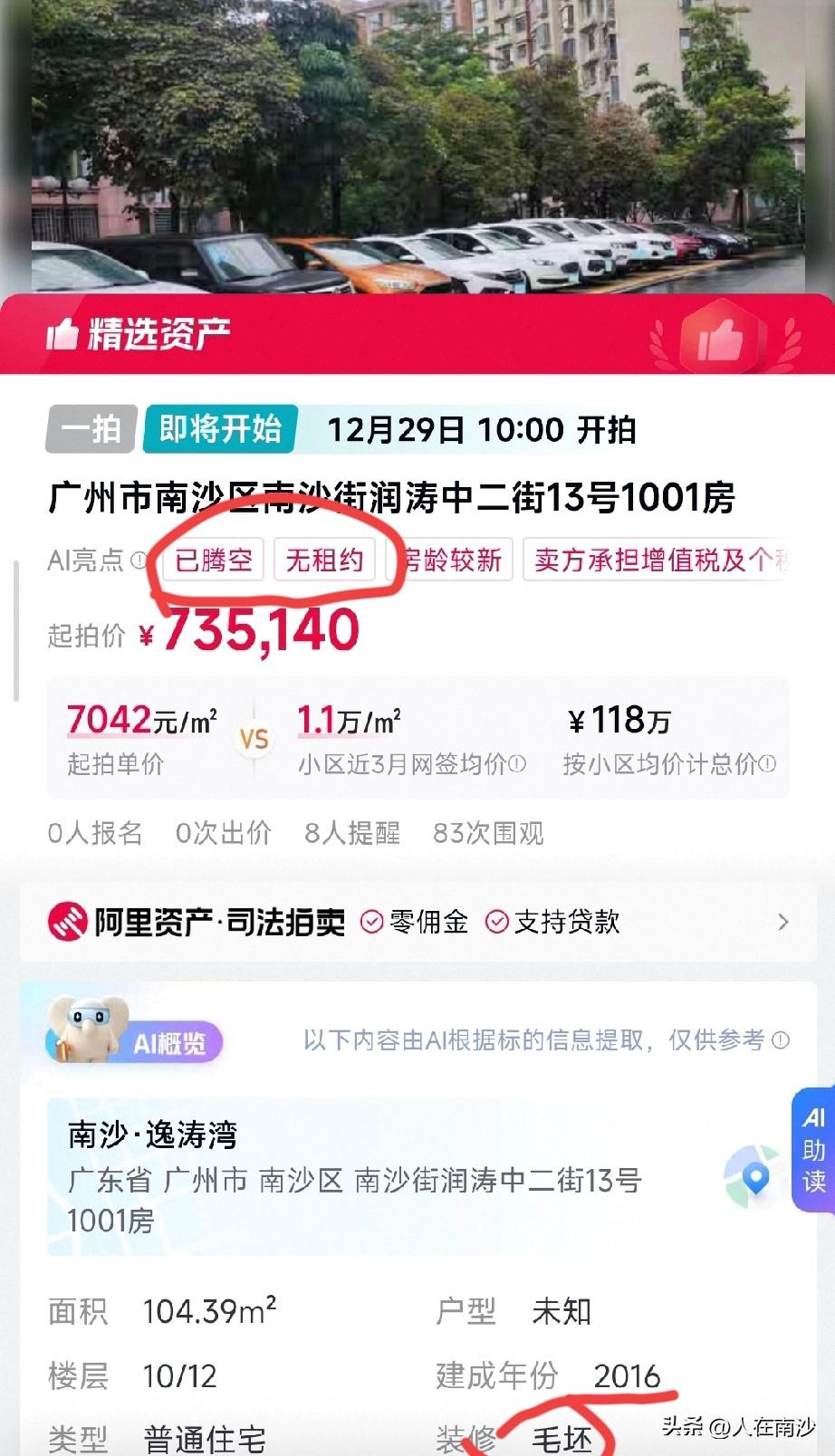 逸涛雅苑四期法拍真的便宜吗?由于这次一次上了200多台,所以没法一一看完,目测了一下基本上价格最便宜的60几万的都是低楼层的,好的楼层都是要去到70万。 而70w 级别现在在南沙选择可多了,碧桂园豪庭,碧桂园天玺等等还是挺多可选的。还有旁边的澜悦也是有一些可选的。而且这些都是带装修的。 逸涛雅苑四期最大的优点是写明了腾空,无租约,拍了之后基本上没啥后续需要跟进的麻烦事,装修了就可以入住。 另外就是位置地段的话比其他的楼盘要要一丢丢。最好嘛个人觉得如果可以等到二拍甚至是变卖,如果还有剩余的话,还是可以捡捡漏的。