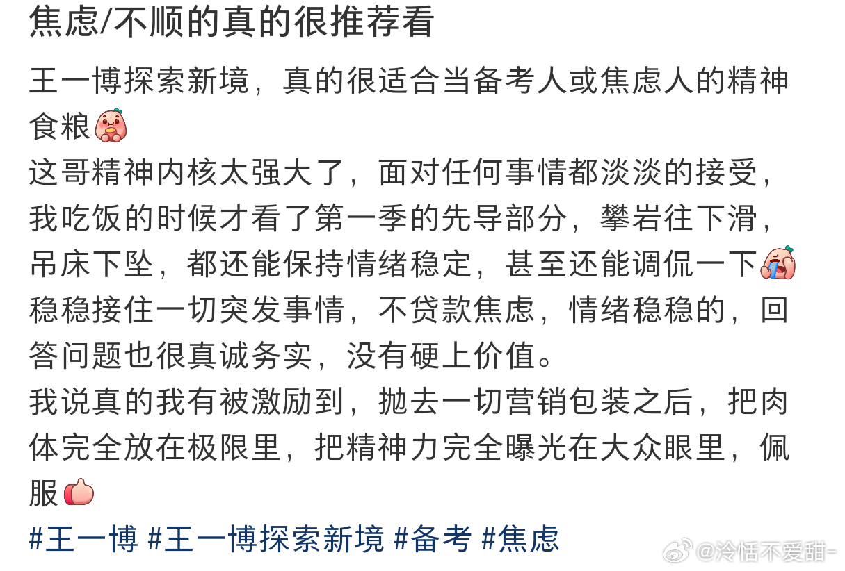王一博的《探索新境》很适合焦虑和真正备考的人看 情绪稳定的神
