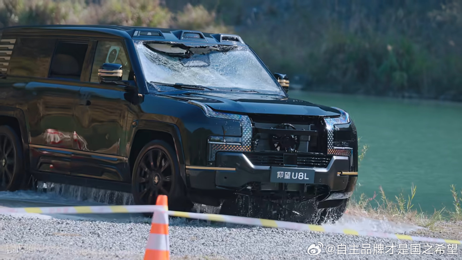 原来就算是仰望 高处掉水里也得把风挡冲开不过U8L竟然 没啥事 三分钟就开上来了