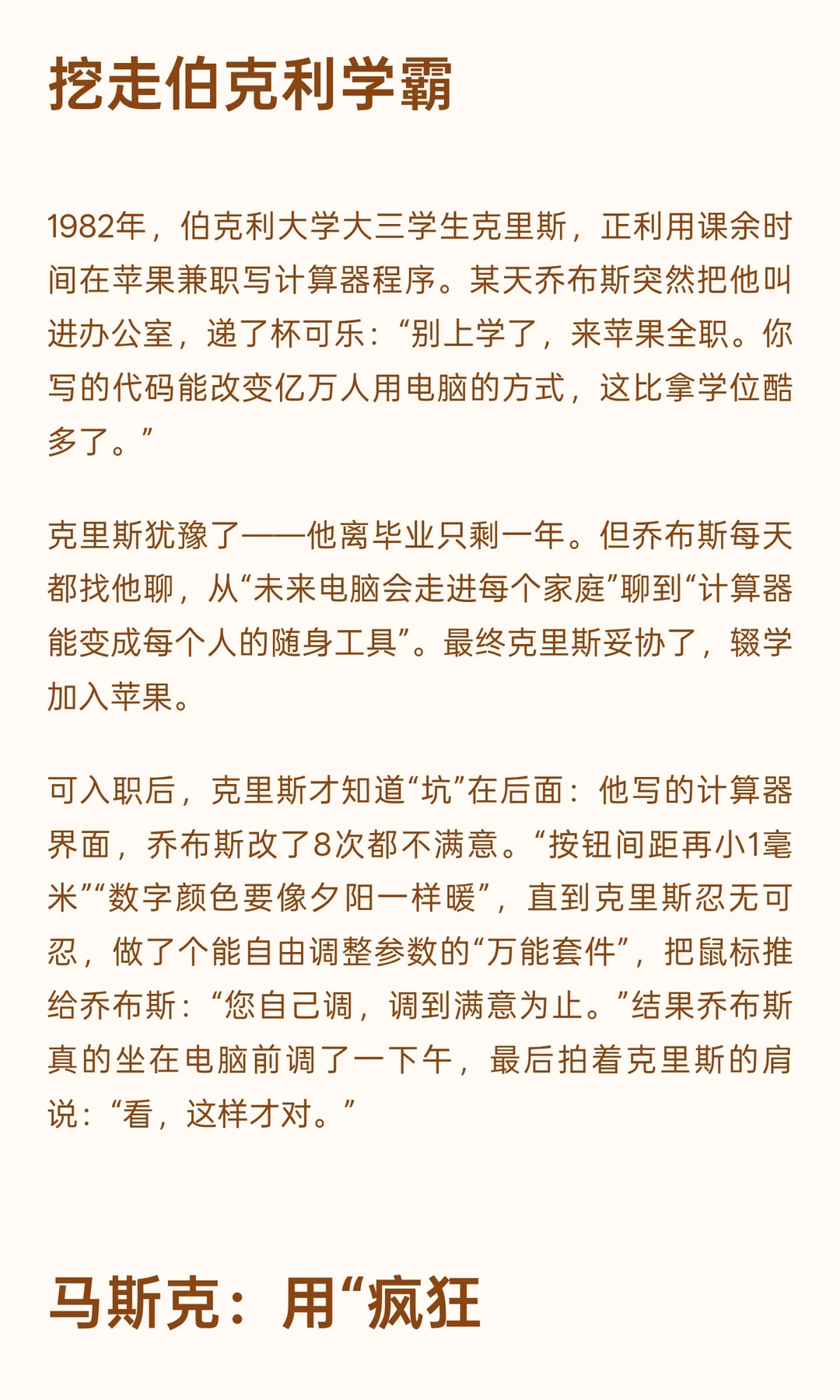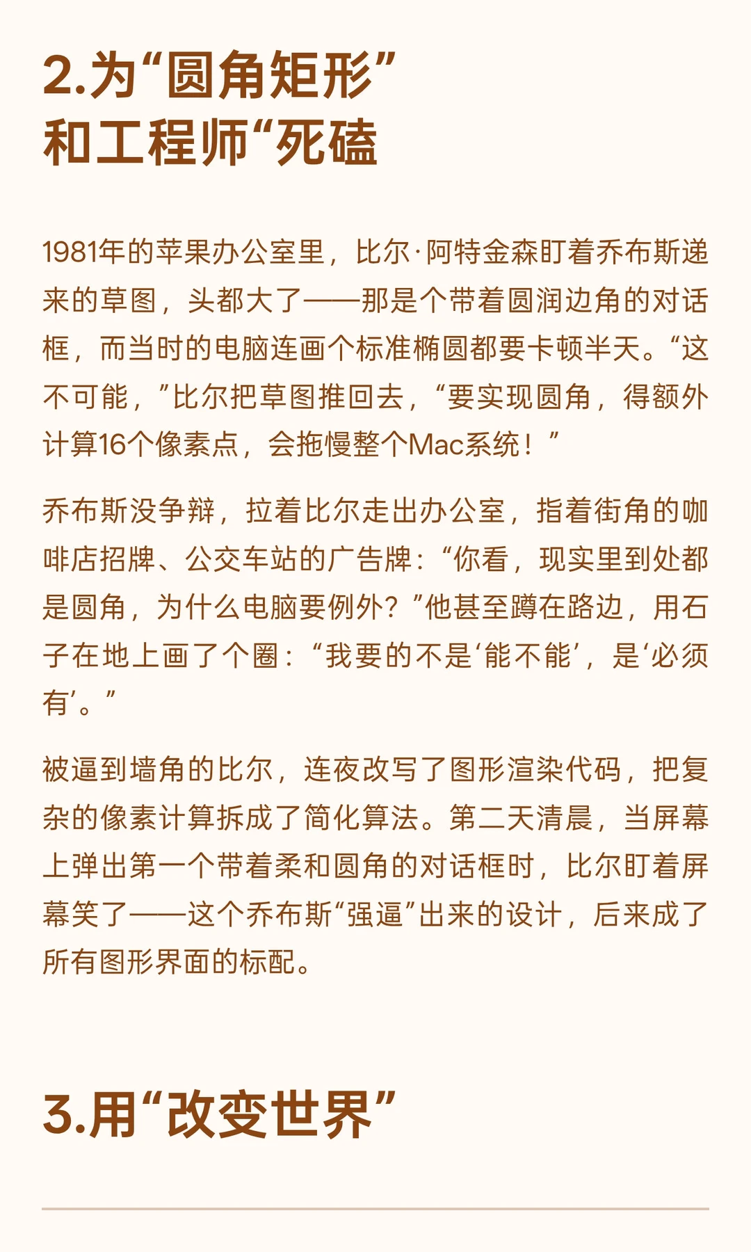 为“圆角矩形”与比尔·阿特金森“死磕”;用“改变世界”说服克里斯辍学加入苹果。