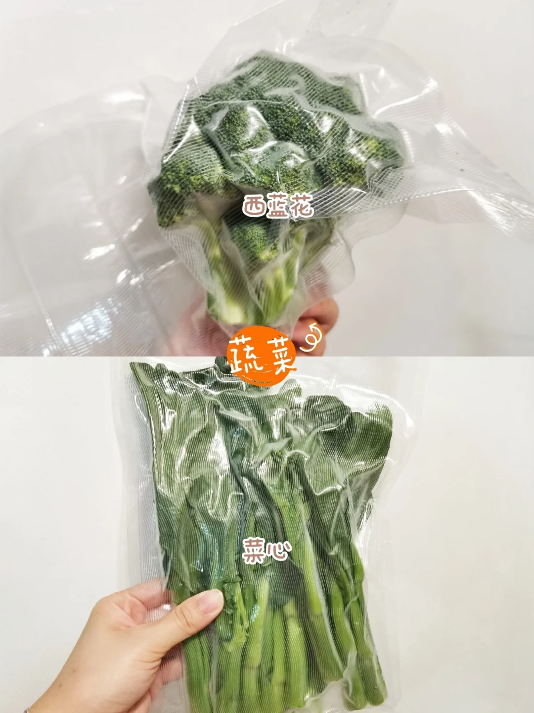 ☑️蔬菜🥦按每餐食用分量分装,抽真空放在冷藏室