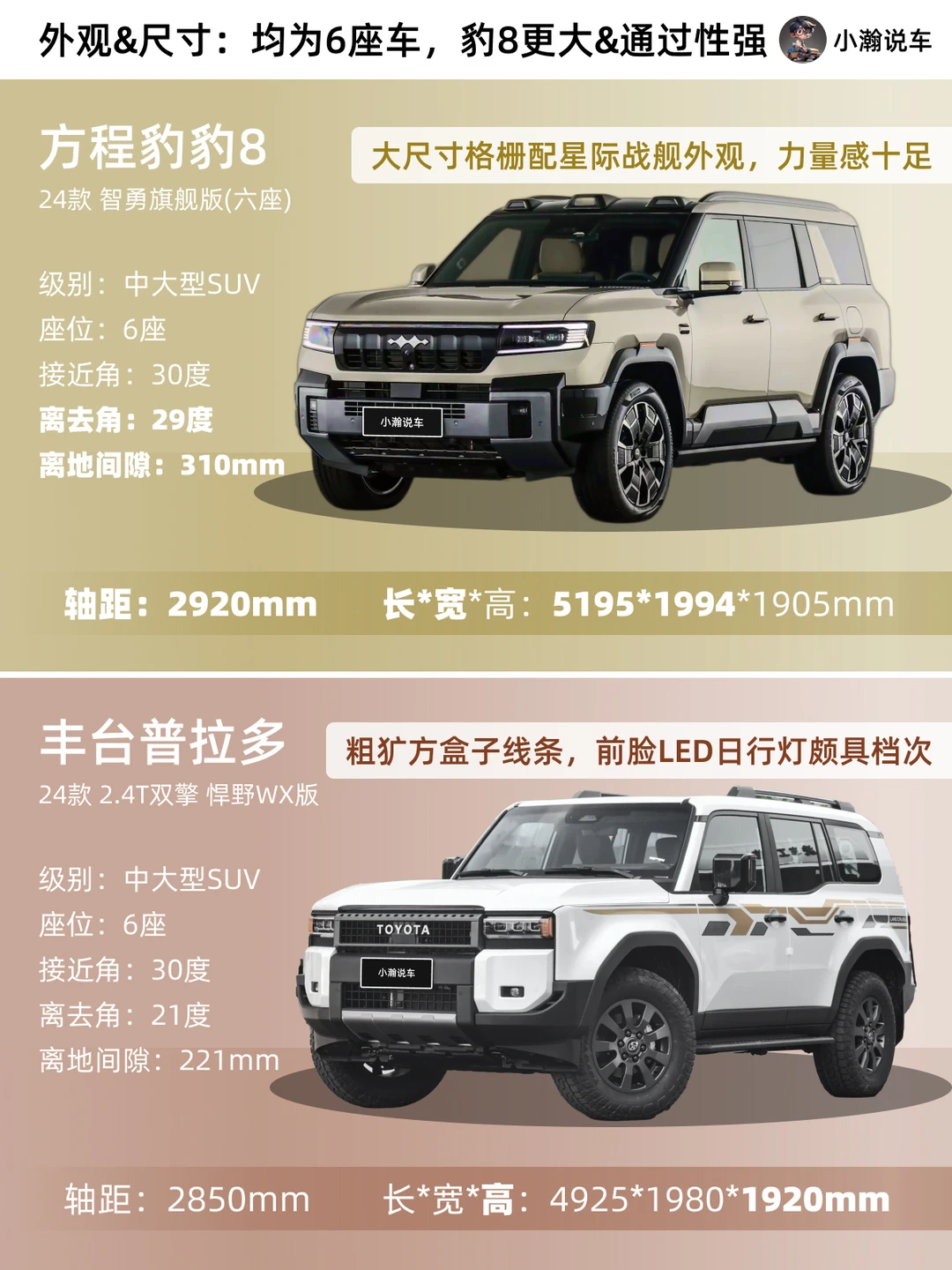方程豹 豹8 丰田普拉多 越野车 华为智驾 方盒子车 国产品牌 比亚迪 华为 方程豹豹8 6座越野你会选择 [PK]