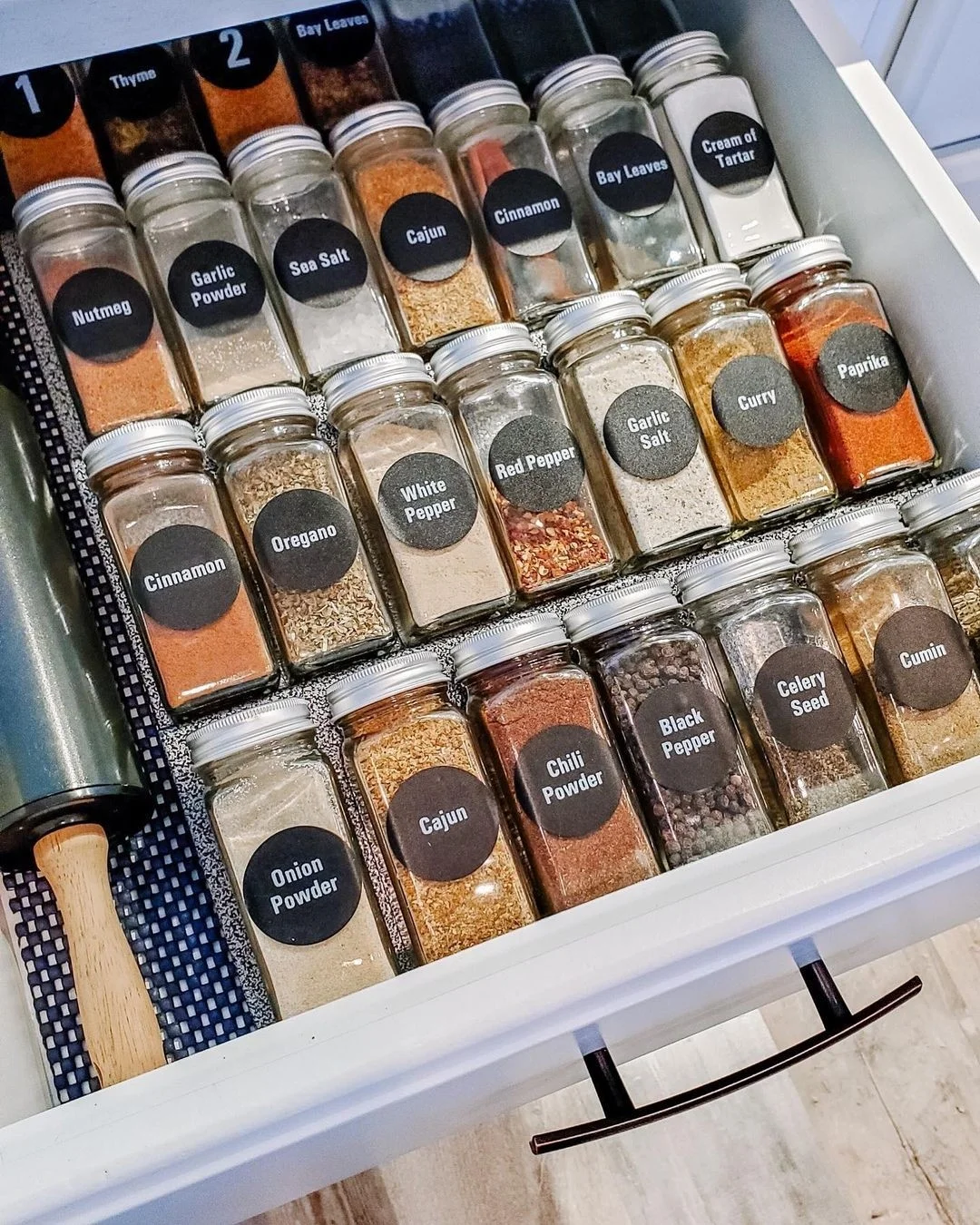 7⃣️统一的收纳罐装调味品摆放在抽屉