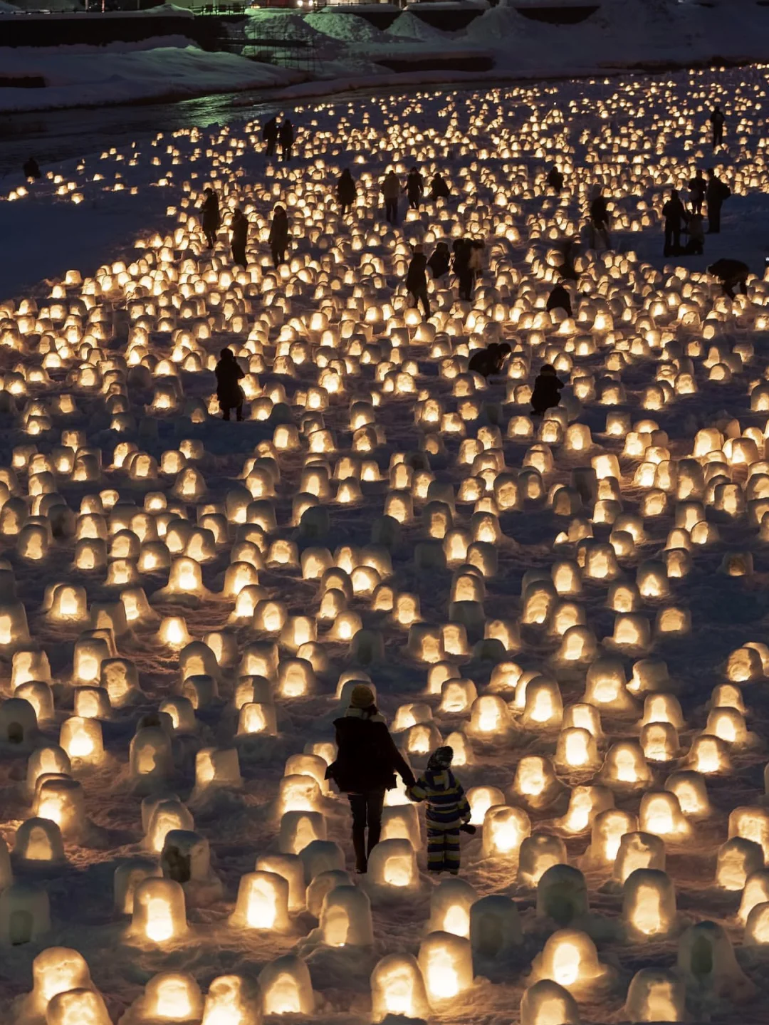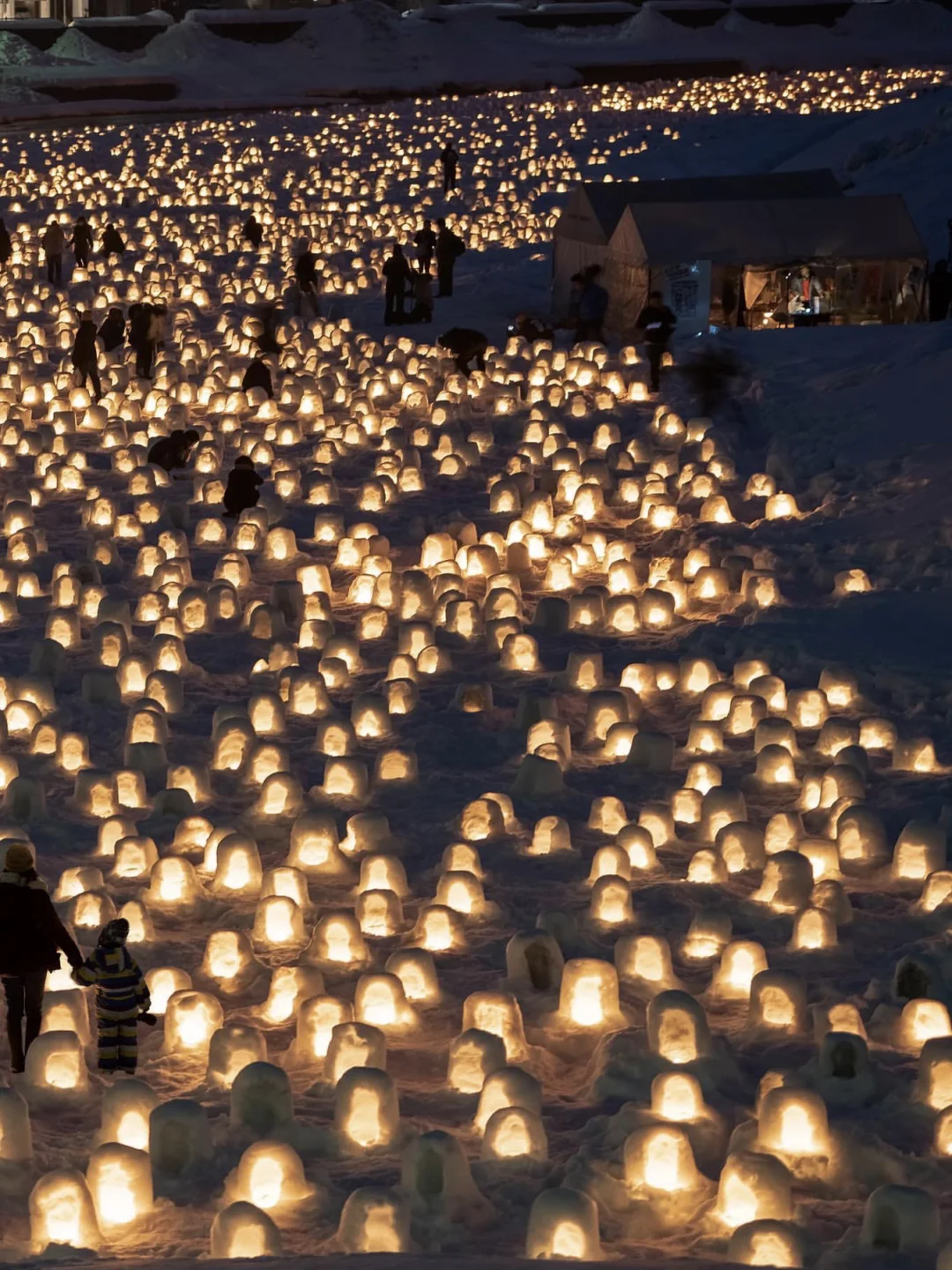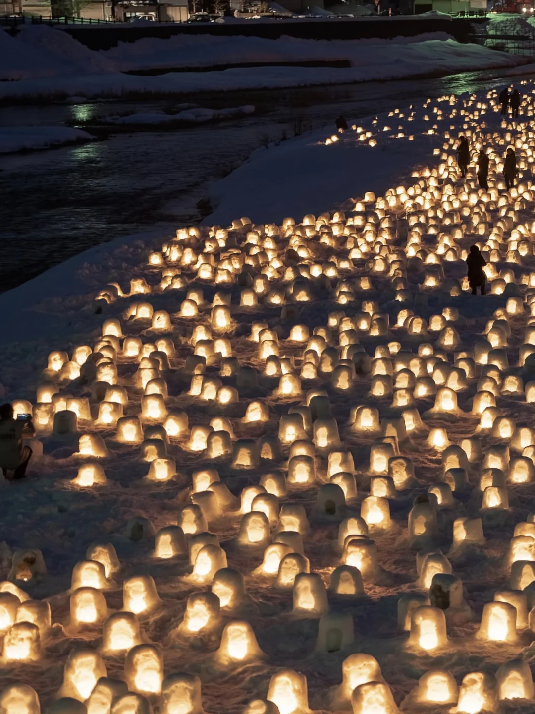 [烟花R]景点名:横手雪祭 [飞机R]地址:日本秋田县 值得看: [彩虹R]还记得日本大雪纷飞的冬天吗?还记得那个雪做的小房子kamakura吗?还记得雪房子里面温暖柔和的灯光吗?日本秋田横手雪祭,带我们体验雪的乐趣。 [彩虹R]每年1月或2月,横手雪祭会带来很震撼人心的场面,几千个雪屋,夜间同时点灯,温馨而震撼的画面; [彩虹R]雪屋里放置钱箱,人们往里面投掷钱币祈福好运;还有年糕、甜酒让雪祭更添几分乐趣。 旅行