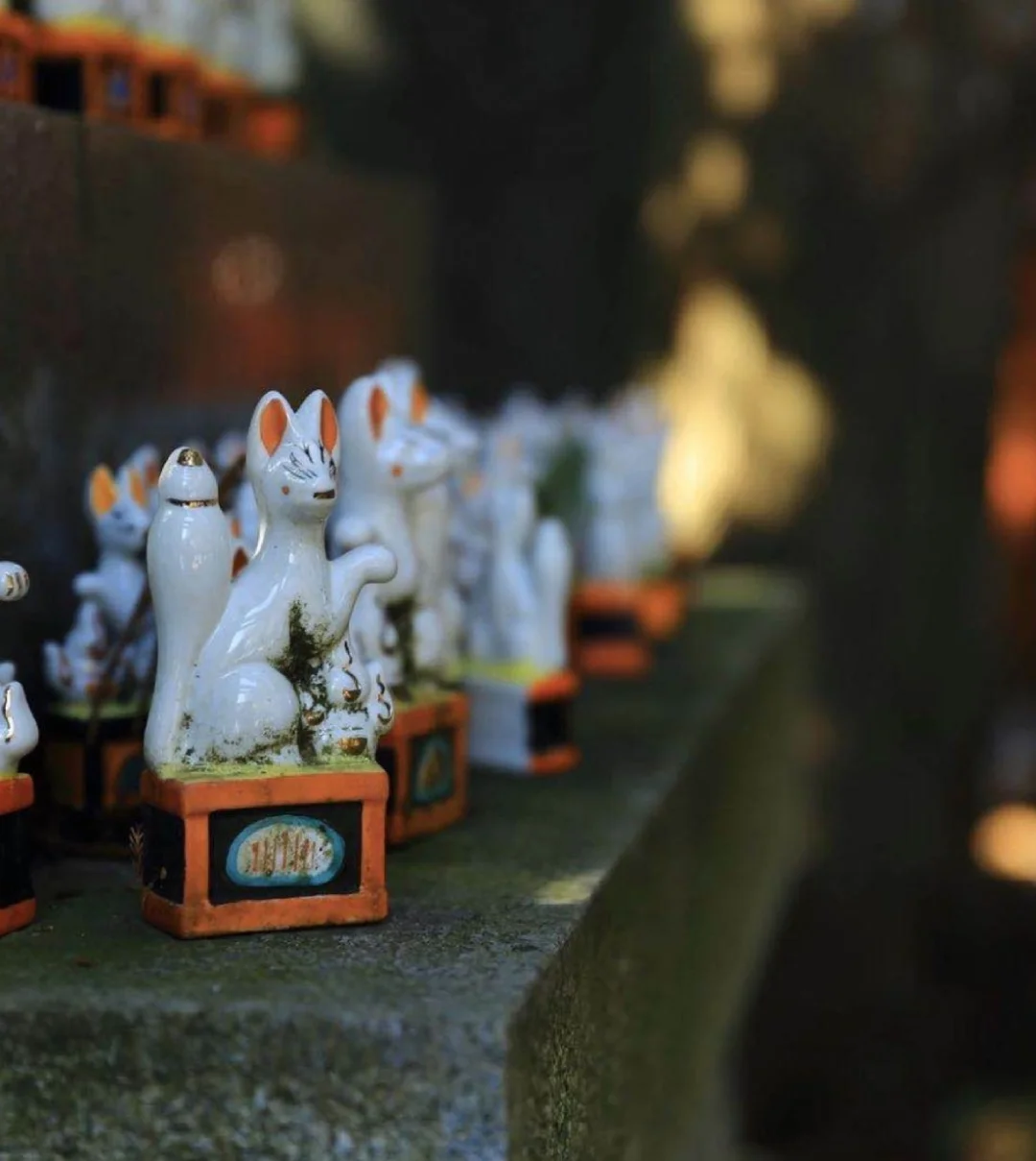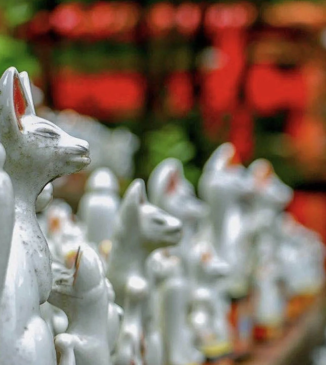 🌈看点2:到处都是狐狸!好吧,石狐狸啦~一进神社,参道旁两座石灯笼,下边密密麻麻的全是小小的石狐狸。相信大家会和我一样,会对此有疑问?据说,人们祈愿或还愿时,会供奉石狐狸的。可见这里参拜人数之多,想必很是灵验👍!
