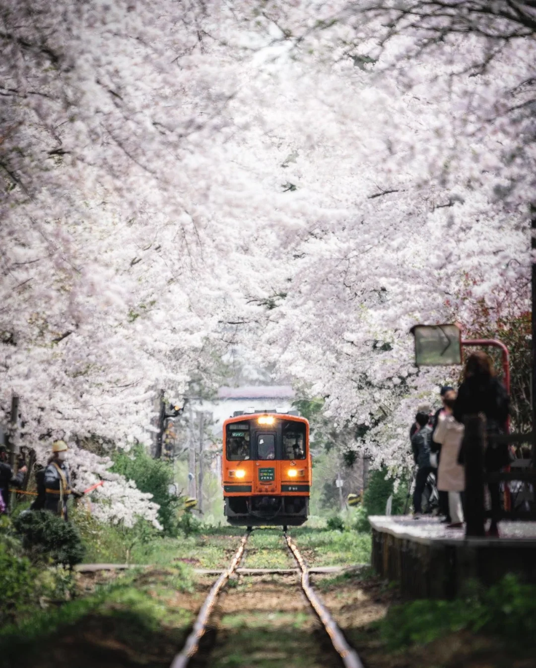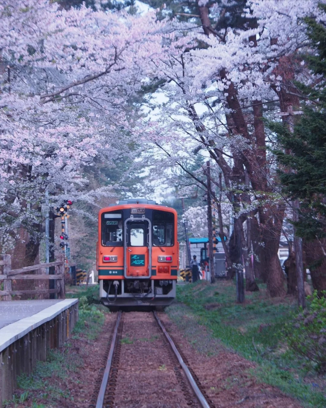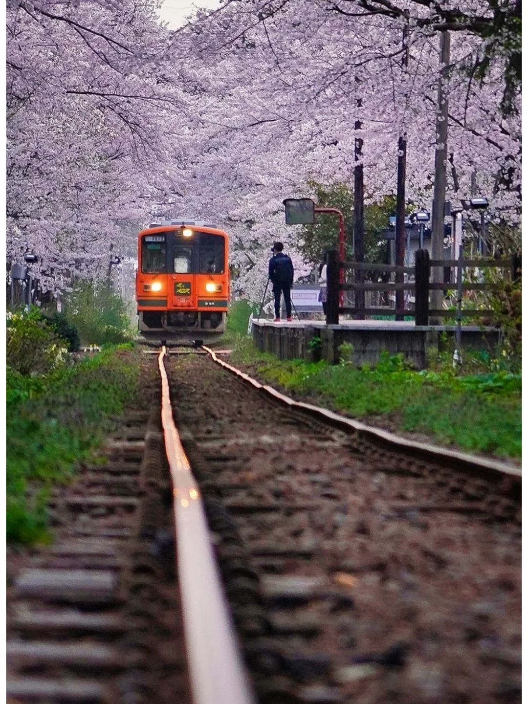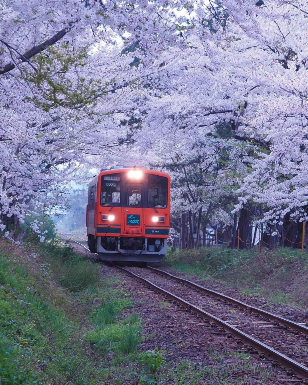 🎊景点名:芦野公园车站 💌地点:日本青森县津轻铁道芦野公园站 🔍值得看: 🌈电车和樱花,说得上是日本特色吧。芦野公园成千上万株樱花,铺天盖地,本已是很有人气的景点。 🌈加上日本特有的,明亮的橙色电车,从樱花丛中缓缓驶来,竟让人分不清是现实还是剧里。很美好。 🌈当然,这是春季的景象,夏秋冬,想必也有一番别样的韵味,带我慢慢去发觉给大家 *图片源自网络