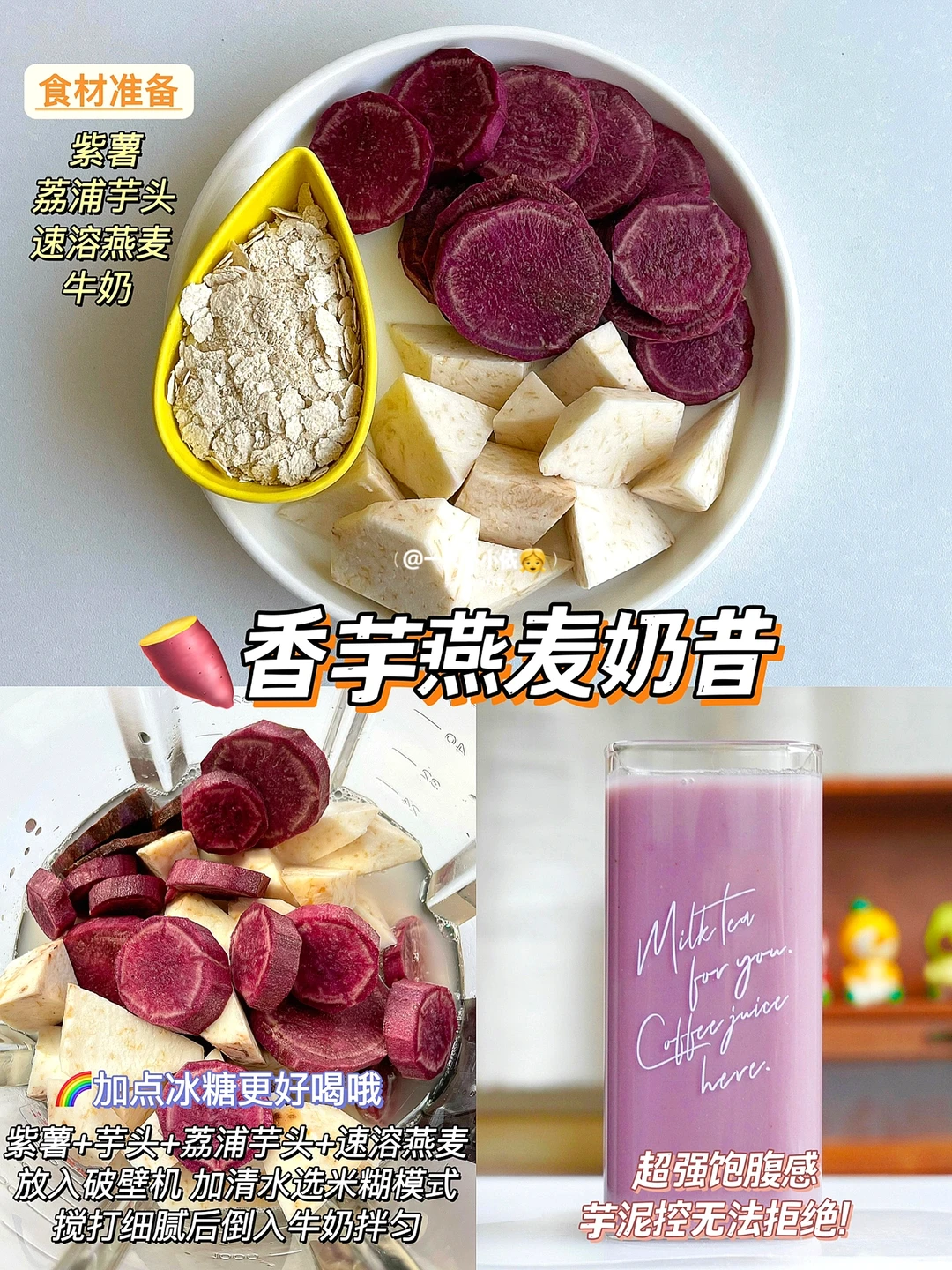 ✨食材:紫薯+荔浦芋头+速溶燕麦+牛奶