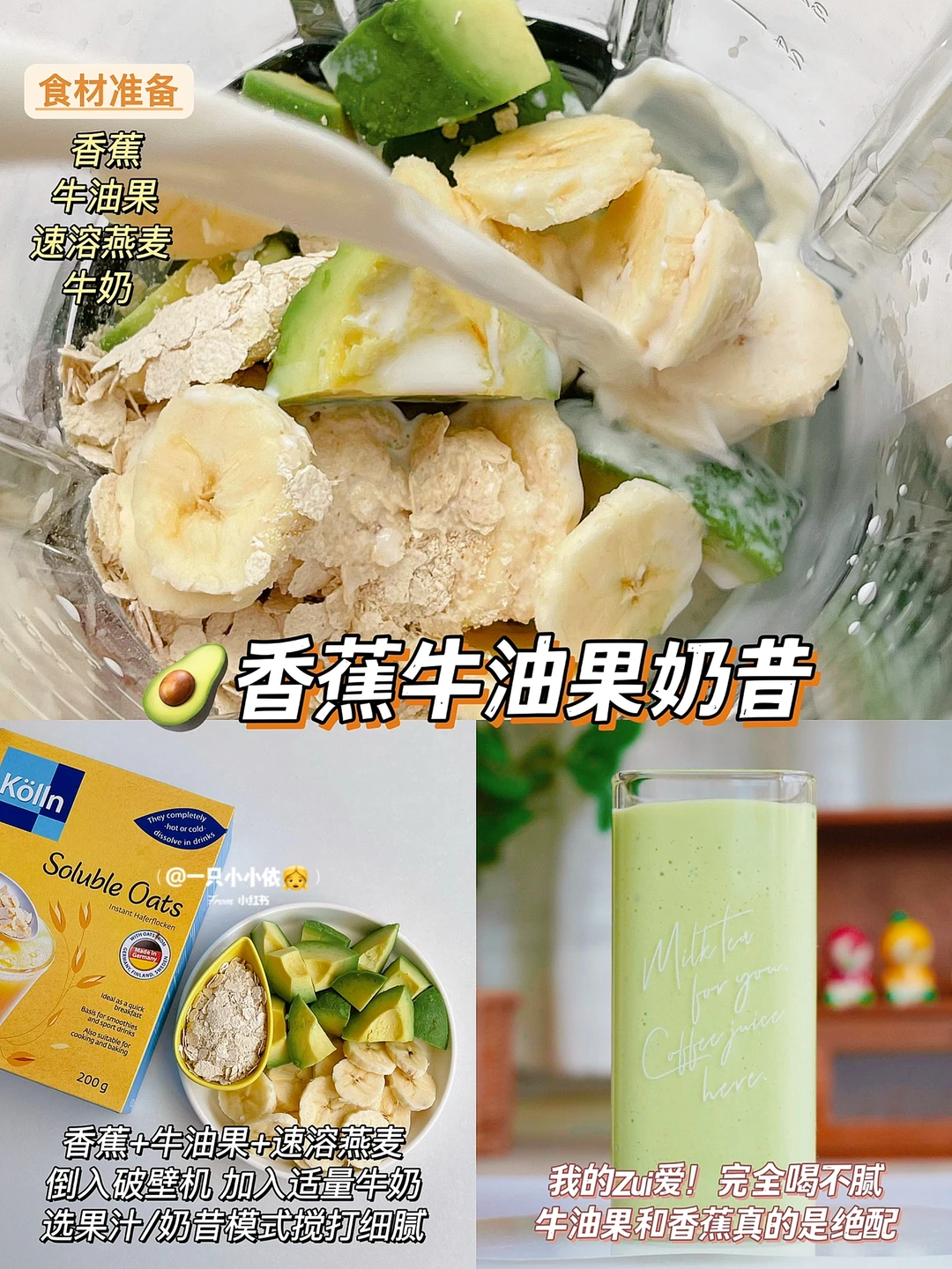 ✨食材:香蕉+牛油果+速溶燕麦+牛奶