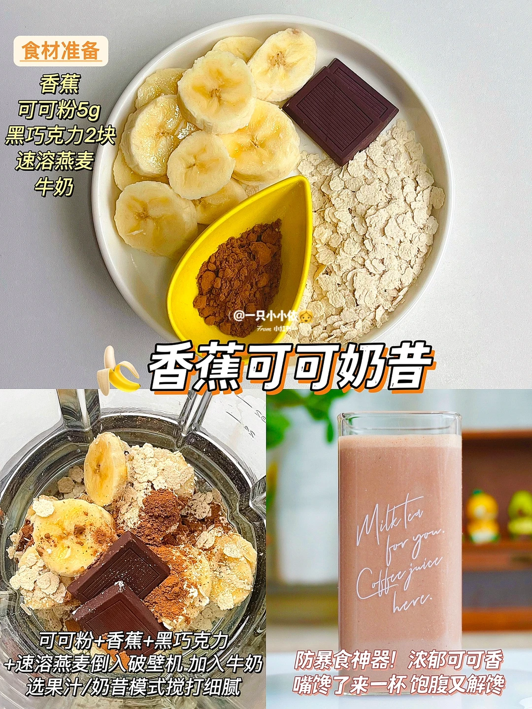 ✨食材:香蕉+可可粉5g+黑巧2块+速溶燕麦+牛奶