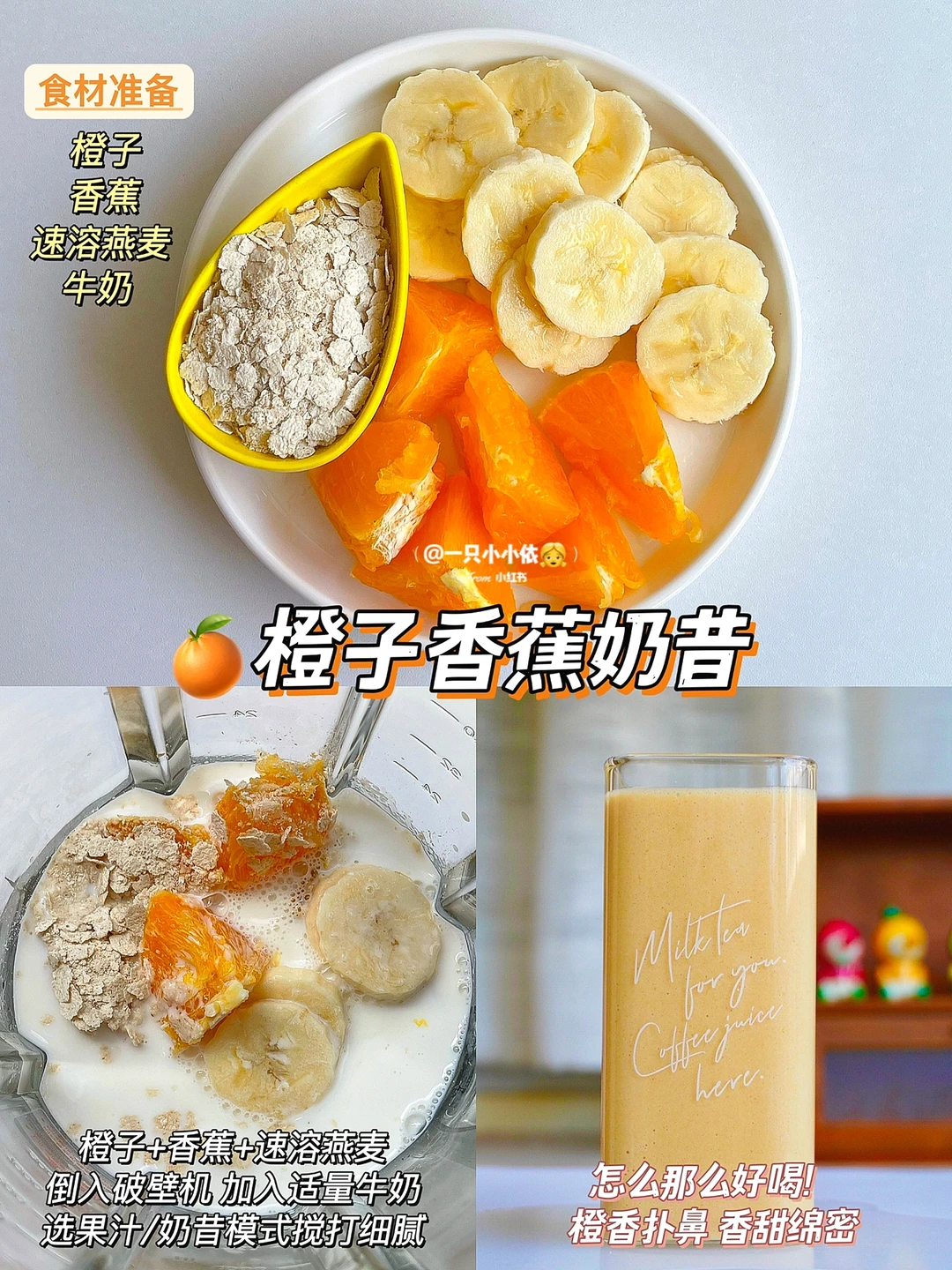 ✨食材:橙子+香蕉+速溶燕麦+牛奶