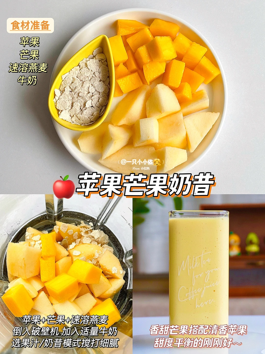 ✨食材:苹果+芒果+速溶燕麦+牛奶
