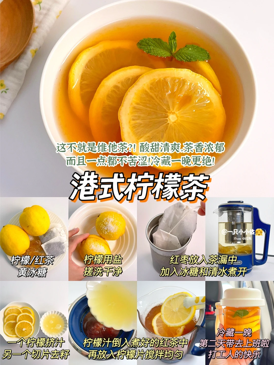 🔹做法:柠檬用盐搓洗干净,一个挤汁、一个切片去籽;红茶放入茶漏中,加冰糖和清水煮开;柠檬汁和柠檬片倒入红茶中,搅拌均匀;冷藏一晚更好喝!