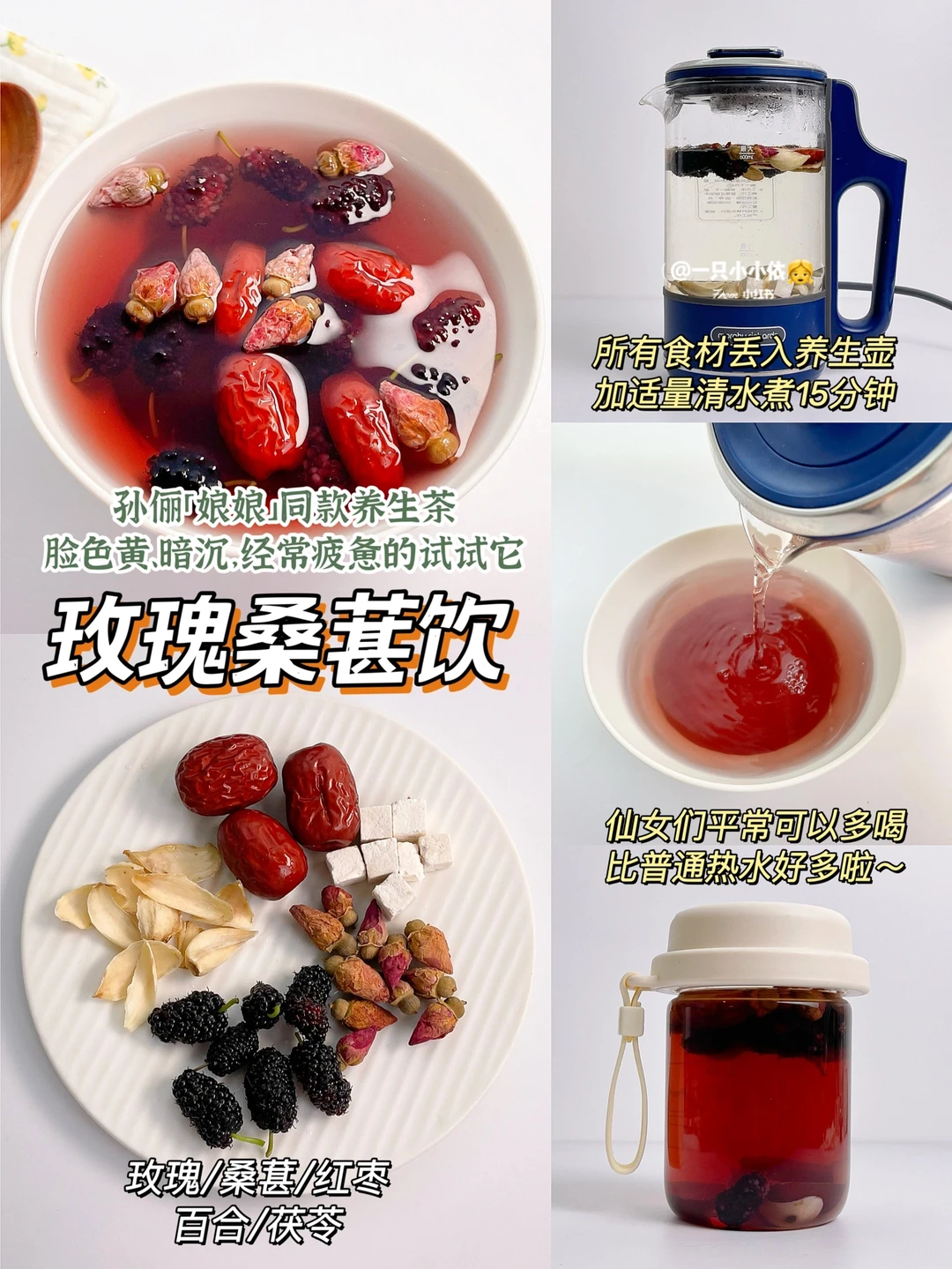 🔸食材:玫瑰/桑葚/红枣/百合/茯苓