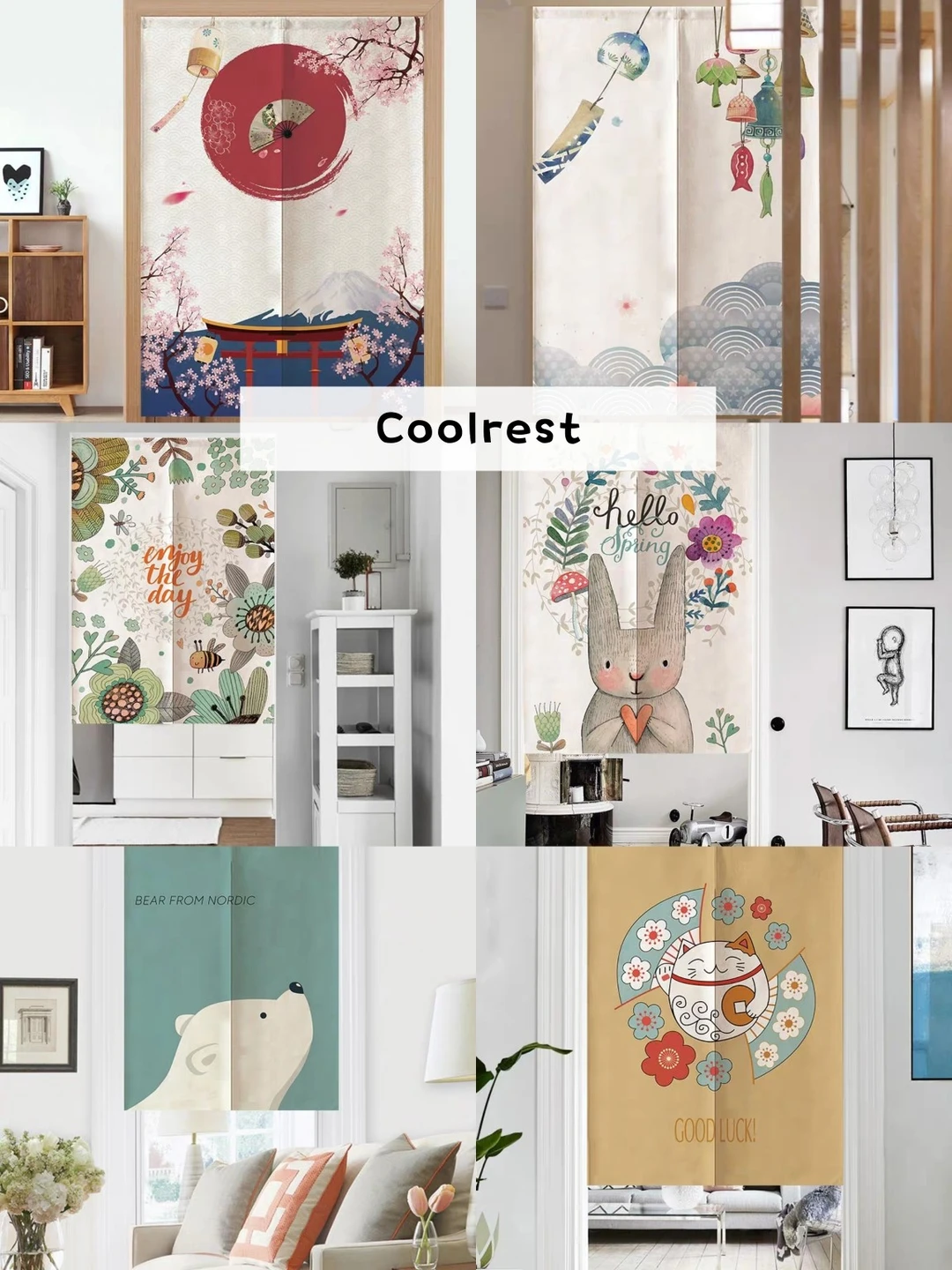 这家是做布艺的,有做❤️沙发套,这次想分享想它家的门帘,有可爱风,有日式风的,很舒服的设计。