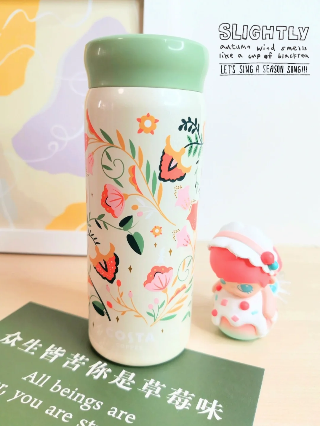 ✨感谢COSTA提供的保温杯新品体验,抹茶绿的盖子,超好看的花卉瓶身,颜值完全长在我的审美点上了~