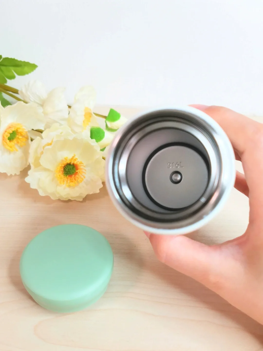 🌈这是个mini保温杯,250ml容量,盖子上有一圈硅橡胶密封圈,保温杯放包里怎么晃都不怕漏,这点我太喜欢了!上下班放包包里超方便的,真是绝绝子。