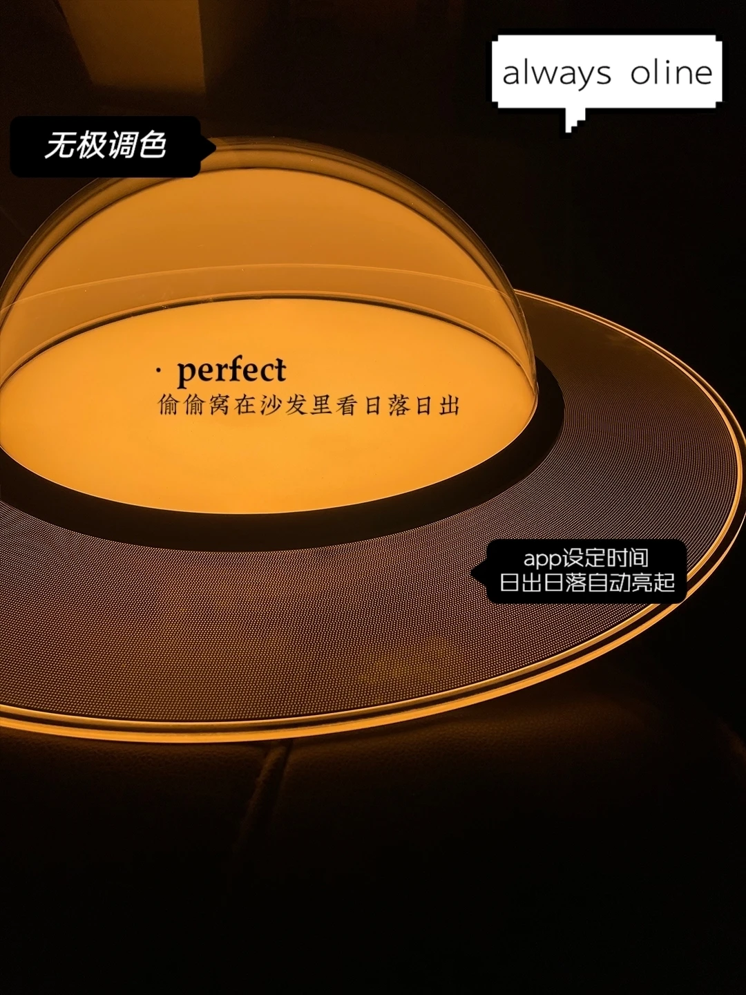 🧡立达信摇光吸顶灯它还有个功能就是能跟随着潮汐节律进行智能调光,比如日出🌅和日落🌇的时候它可以自动点亮,光线还是很温柔的那种,不会刺到眼睛!想想每天清晨都是温和的光线把你唤醒,就问你是不是hin舒适~
