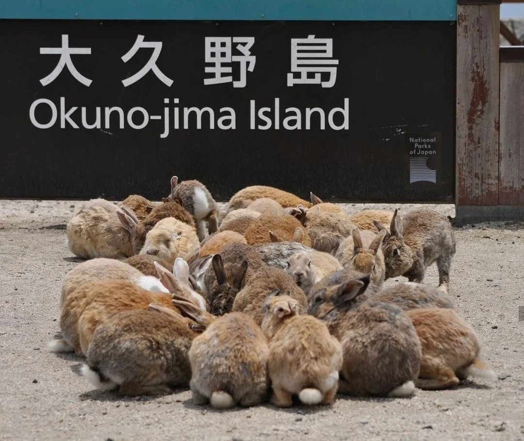 🎊景点名:大久野岛 💌地址:广岛县竹原市忠海町大久野岛 🔍值得看: 🌈快来看兔兔啦!还不得有几百只吗!🐰🐰的繁殖能力真是让人目瞪口呆[大笑R]据说这个岛上二战期间生产毒气,之后大家都弃岛而去,剩了几只兔兔,繁衍生息至今~这里也成了有名的兔子岛~ 🌈除了看兔兔,准备些青菜,喂兔兔,太治愈了! 🌈另外,各种动作,各种形状的兔兔,用相机捕捉下来也是很有趣啦! 🌈当然,蓝蓝的大海,平静的海面也是难得一见的美景~ ♥️友情提示:喂兔兔注意手手安全哦~ 🎁特产推荐:红叶馒头喽~ *图片源自网络