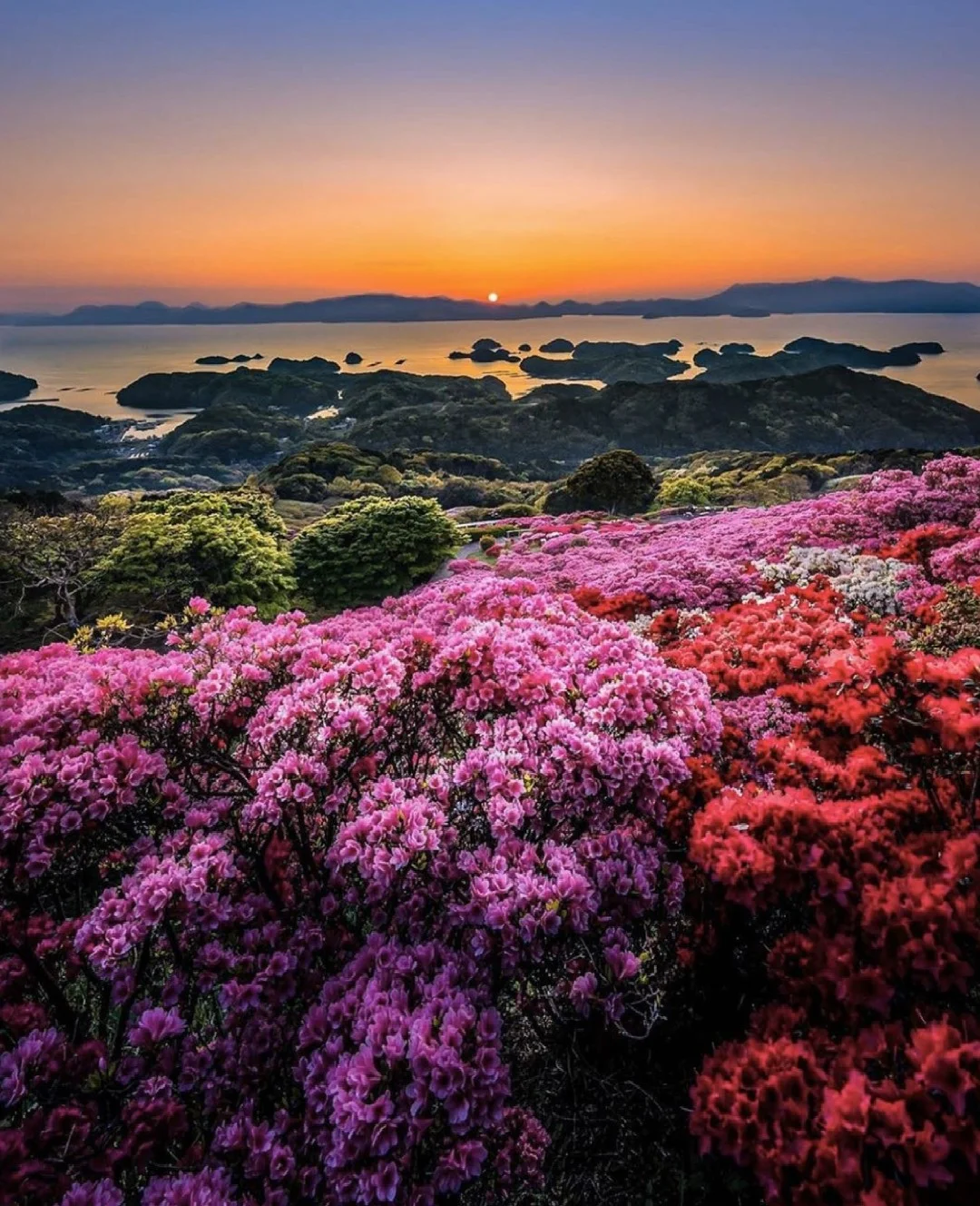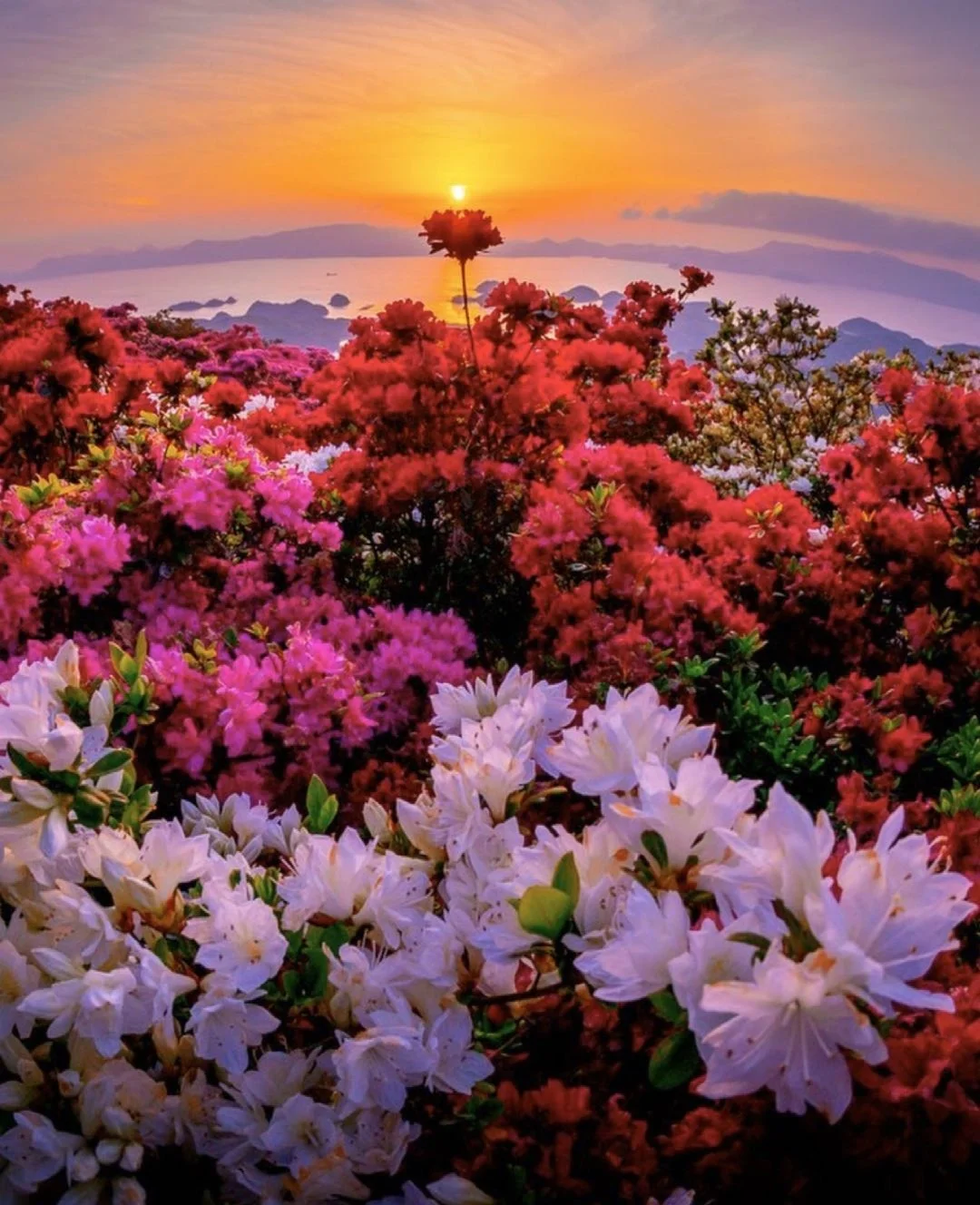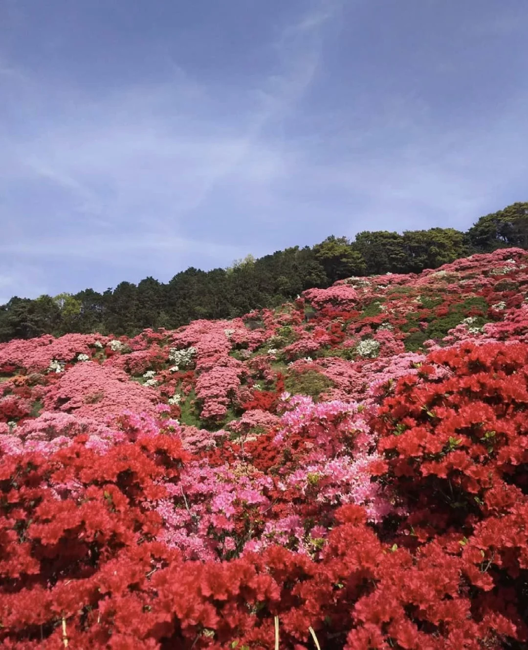 🌈看点2-春天,十万多支杜鹃花一齐开放,真真是一片花的海洋,远远望去真相是一片柔软的毯子,除了美无法形容。与蓝天、碧海相映衬,美哭了!