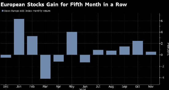 欧洲股市连续第五个月上涨,创2024年3月以来最长月连涨纪录。