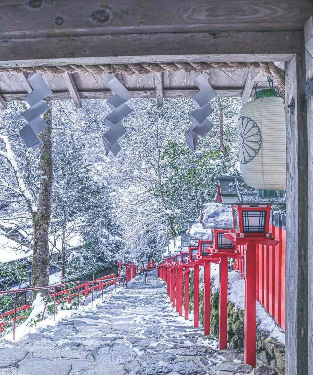 🎊景点名:贵船神社⛩️ 💌地址:京都府京都市左京区鞍马贵船町 🔍值得看: 🌈今天只想简简单单聊几句,听说贵船神社可求良缘,非常灵验,所以我心动了。去到之后发现,圣洁的雪加上神社的庄严,简直是对我不安的心进行了一次深度洗礼。仿佛落雪埋葬了一年的慌乱不安,也仿佛2020年不好的种种从未发生过。好了,不多说了,静静感受下这份祥和与宁静吧,晚安[飞吻R] ❤️友情提示:可求良缘!! 🎁特产推荐:推荐了很多,其实大家自己发掘的也许更有趣! *图片源自网络