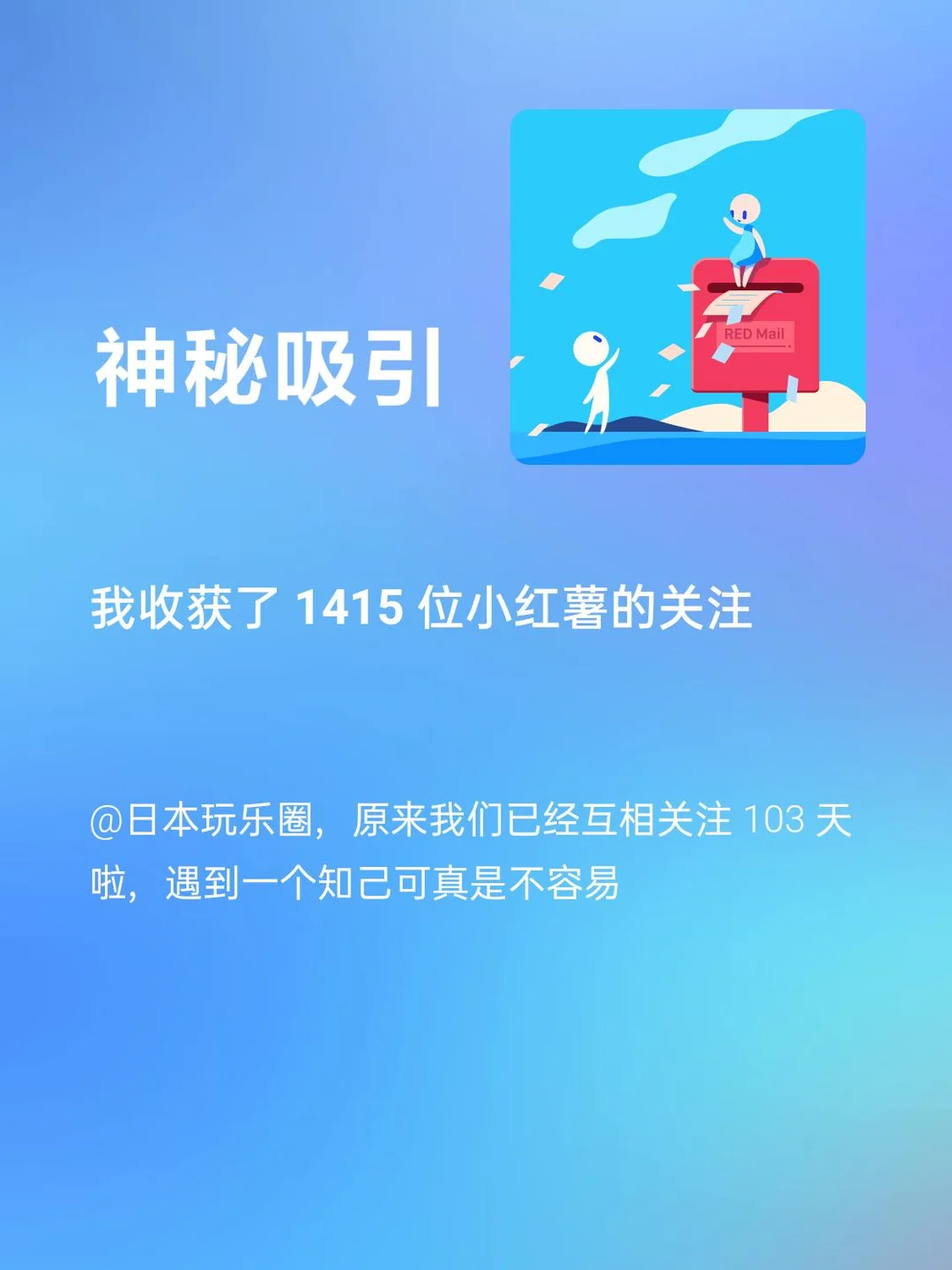 [斜眼R]我收获了 1415 位小红薯的关注,103 天啦,遇到一个知己可真是不容易