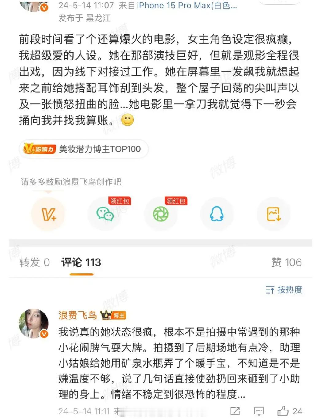 又有人出来捶周姓女艺人了,把装满热水的矿泉水瓶砸向助理小姑娘,水瓶摔到了助理脖子上。周姓女艺人 剧组耍大牌 周依然