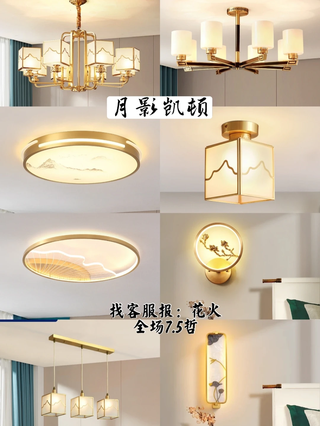 主打黄铜灯,质感超赞的,风格多样,有新中式、美式、欧式、北欧风、现代风、轻奢风,全屋灯具都有。