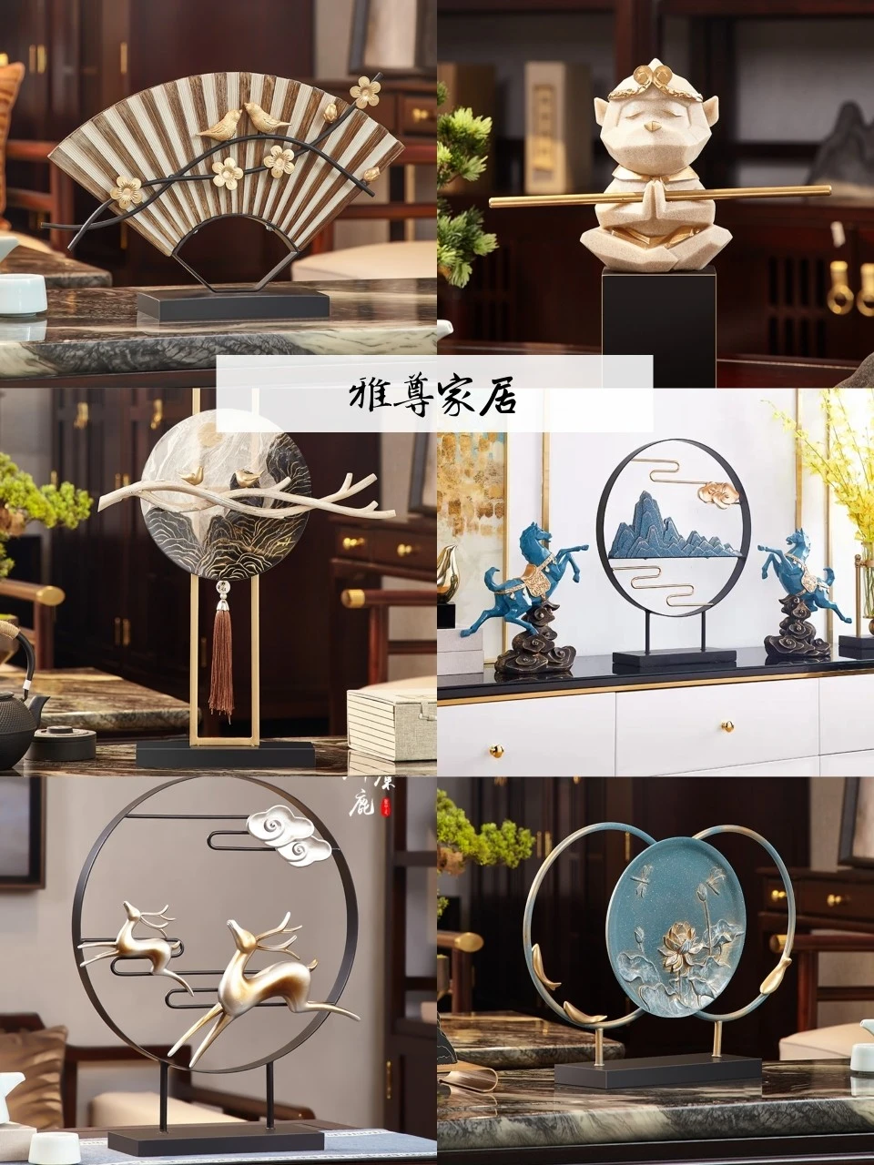 这家的摆件有好几种风格,新中式风格的🦄摆件比较有创意,寓意也hin美好。