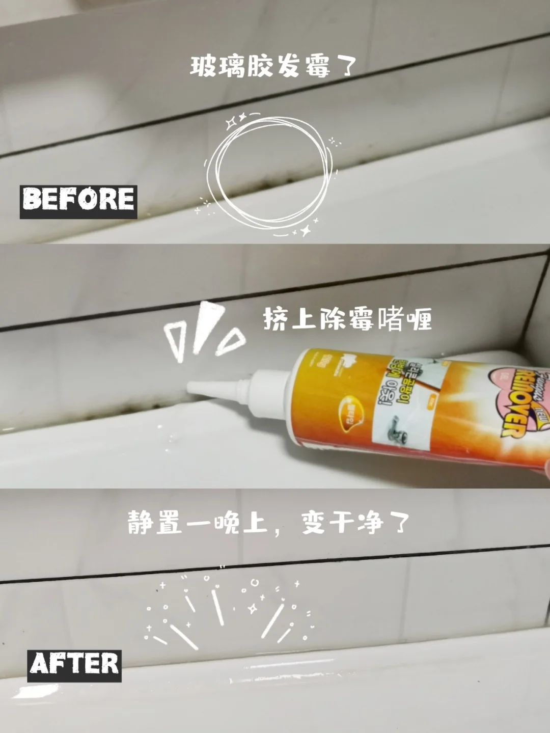 这个是啫喱状的,对付任何缝隙的霉jun🦠都可以,可以用于橱柜、浴室柜的玻璃胶,也可用于马桶🚽、瓷砖的填缝剂、冰箱、洗衣机的胶条容易发霉也可以涂抹这个,一般晚上抹上,第二天就会变干净了。