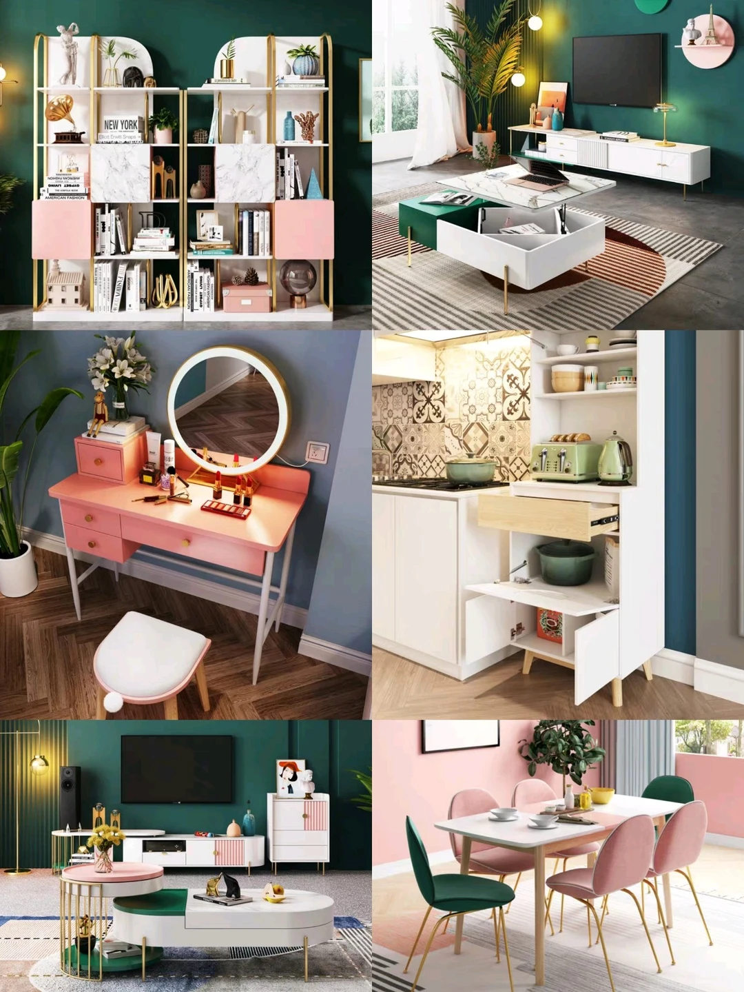 北欧风也不一定只有实木家具,比其家的马卡龙色彩的轻奢北欧风家具,实木元素中加入了明亮的色彩和金属后,显得很是特别。小仙女会喜欢的设计哟~