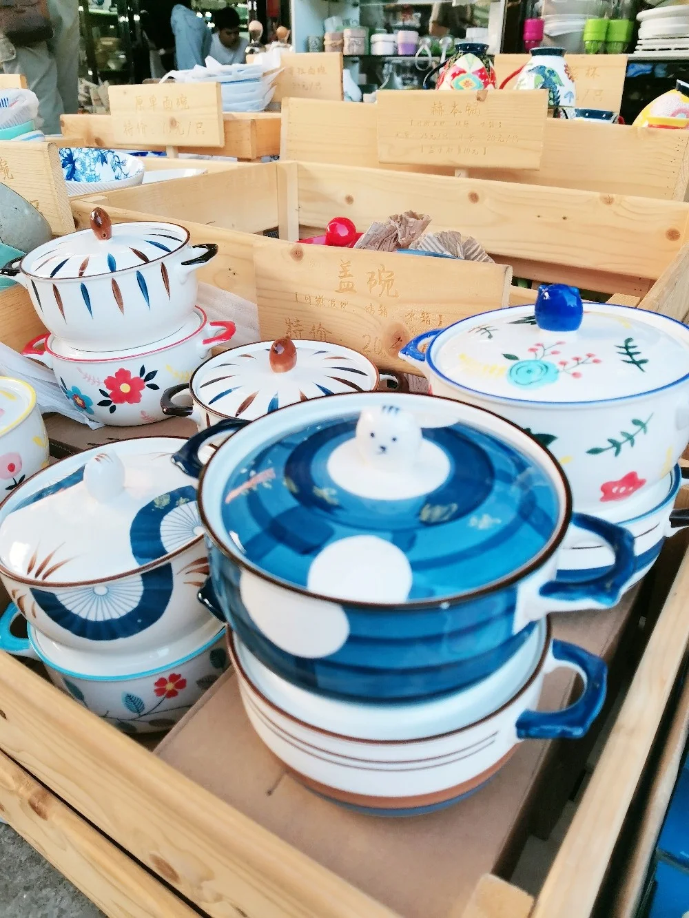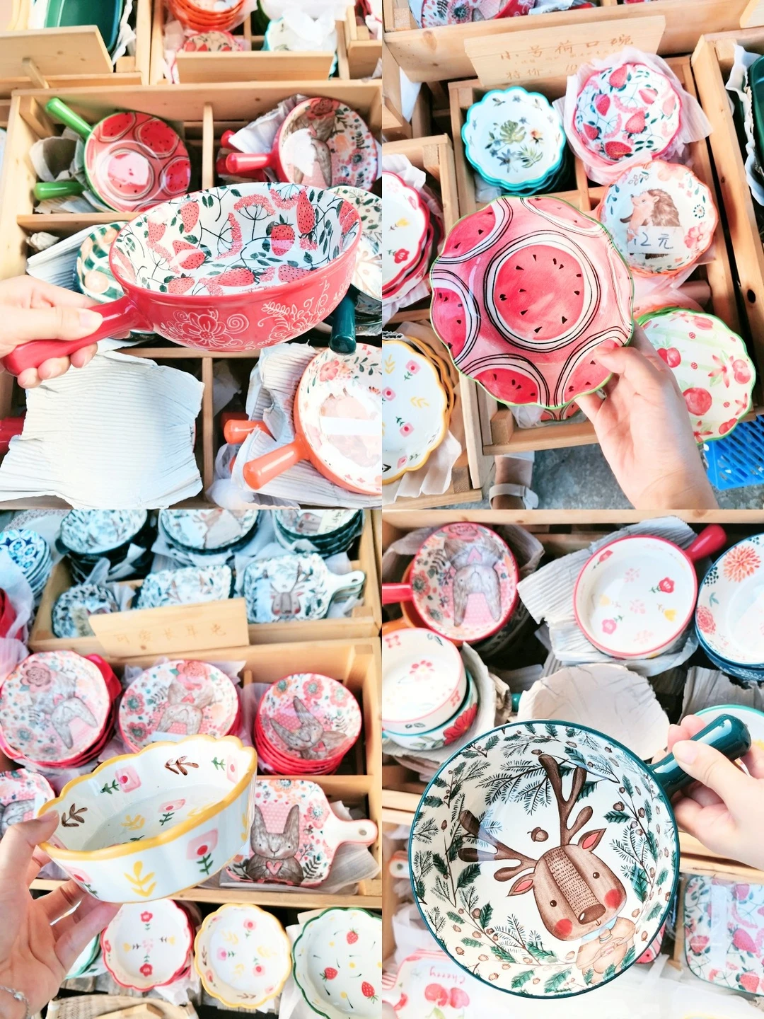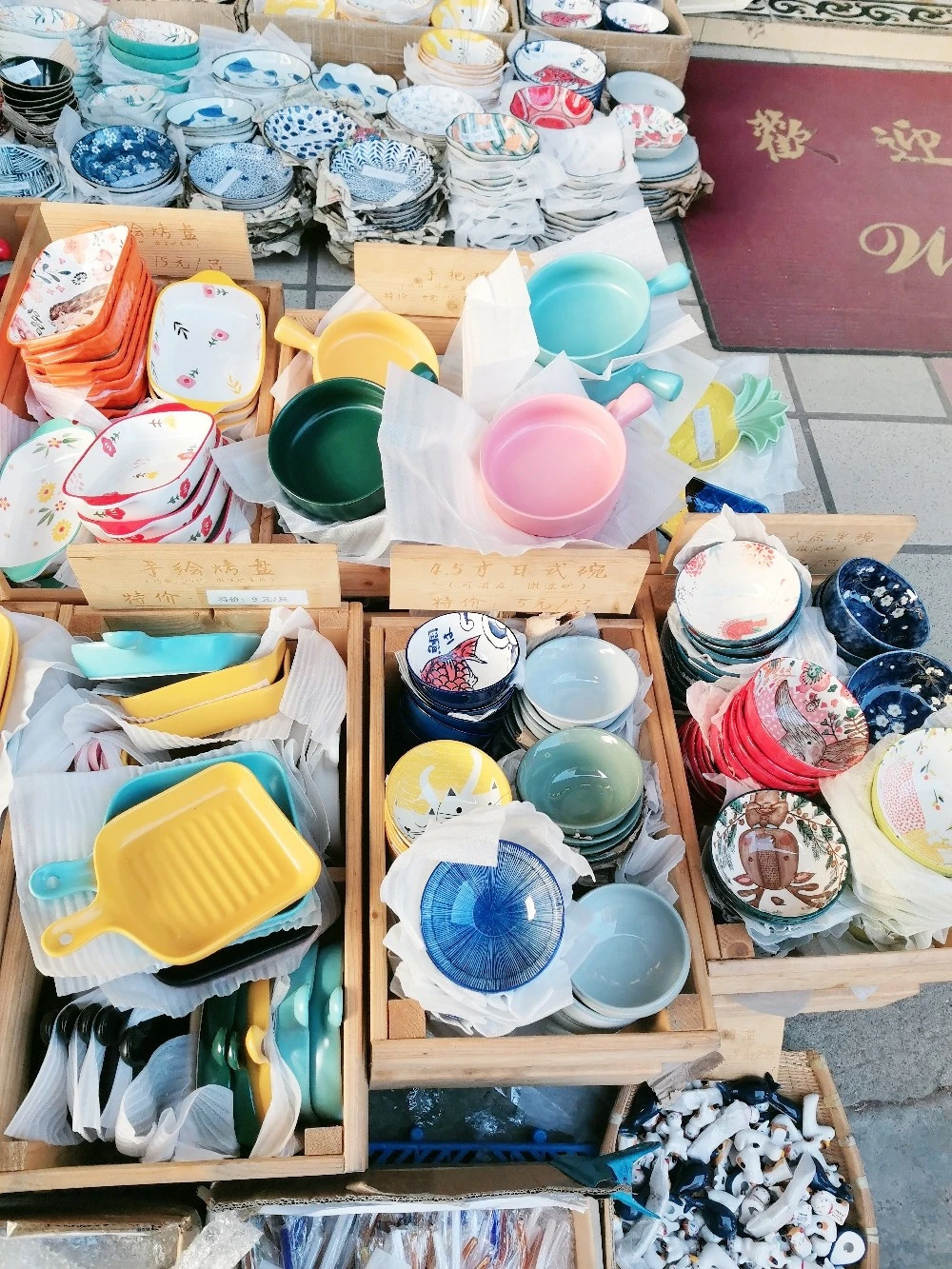 😉今天逛了一家🍵餐具批发店,门口摆满了平价餐具都是可以零售的哦,好多手绘碗、碟、杯子都灰常🌸漂亮,几块💰的东西,网上买起码20-30块吧,关键是现场看不怕有色差👌🏻,100元买到拎不动,太满足😍啦!