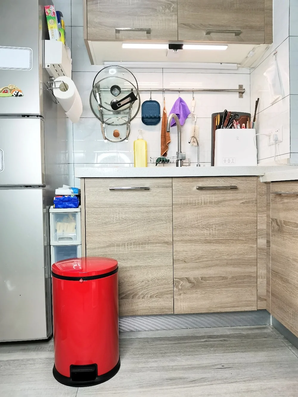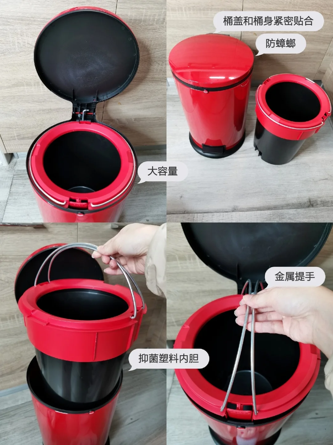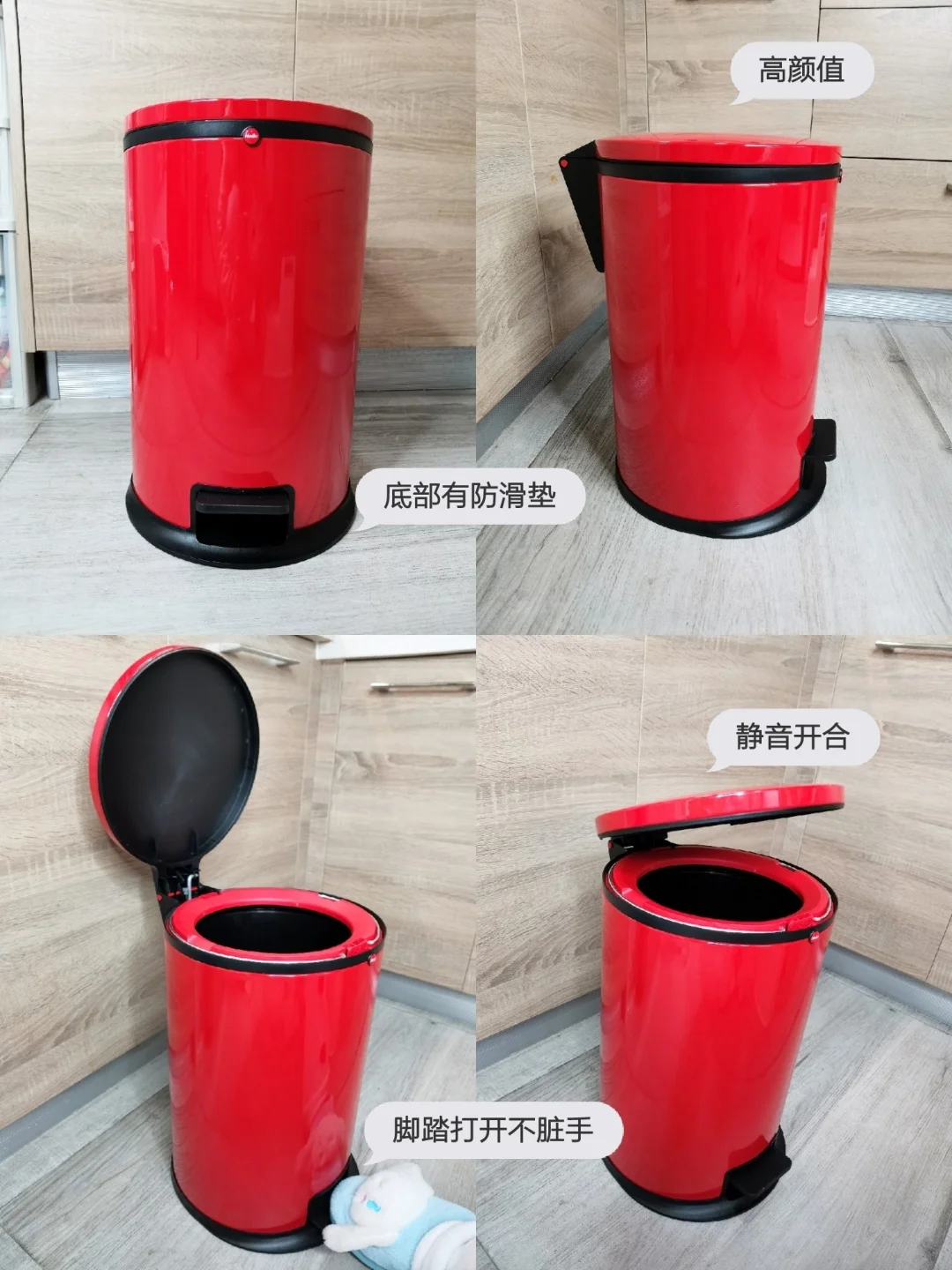 Hailo的垃圾桶我也入手了,容量大,颜值高🌈,放在家里看上去特别抢眼。盖子可以紧密贴合桶身,防止蟑螂跑进去。它是用脚踏打开垃圾桶盖的,不会弄脏手🖐🏻️。盖子还带有缓冲,开合没有噪音。垃圾桶底部有防滑垫,不防止倾倒。塑料内胆是抑菌材料,可以有效防止垃圾滋生细菌。带有金属手柄,拿取方便。