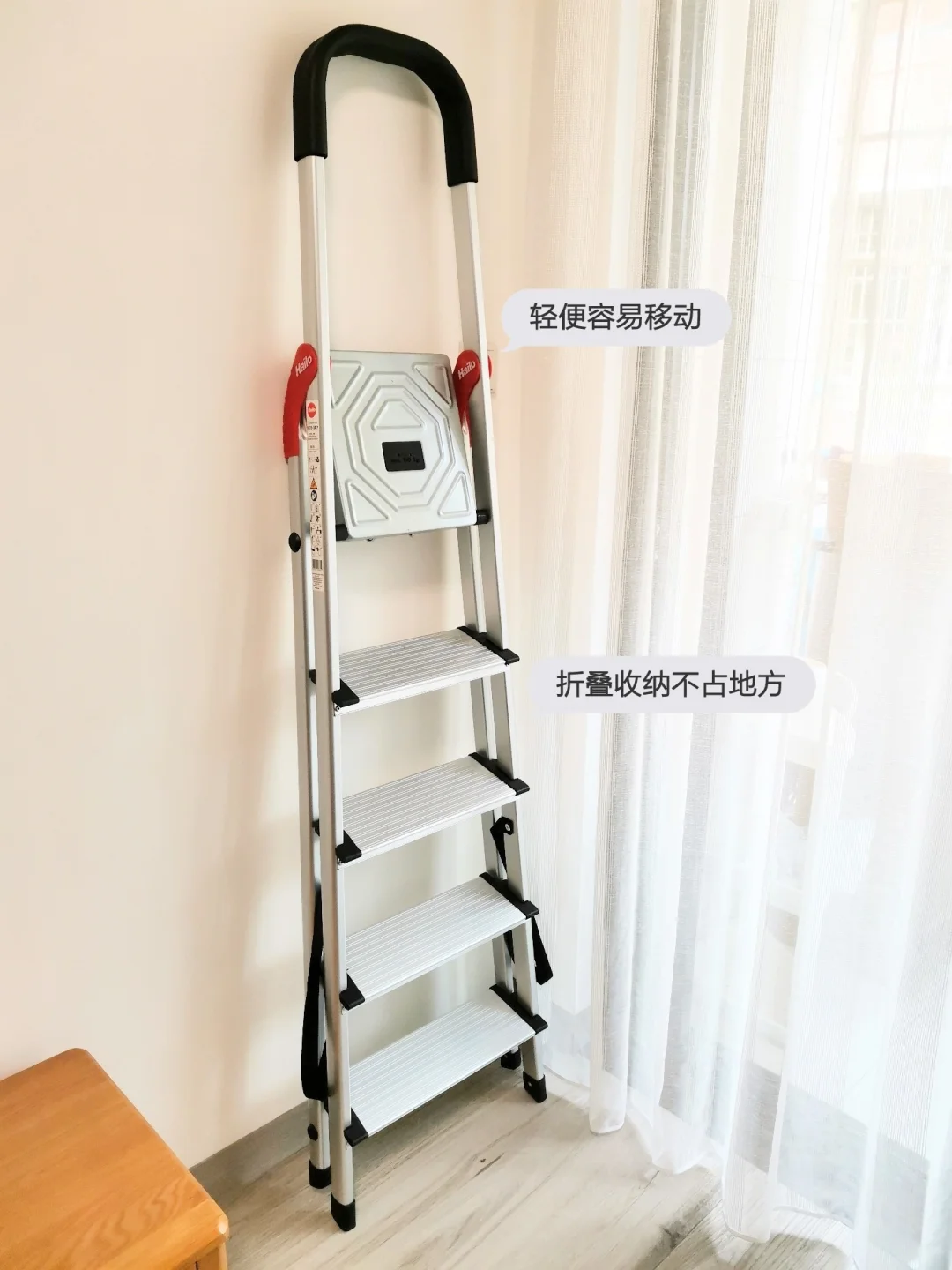 这款梯子可以折叠起来,❤️不占地方,轻便又容易移动,很好收纳。