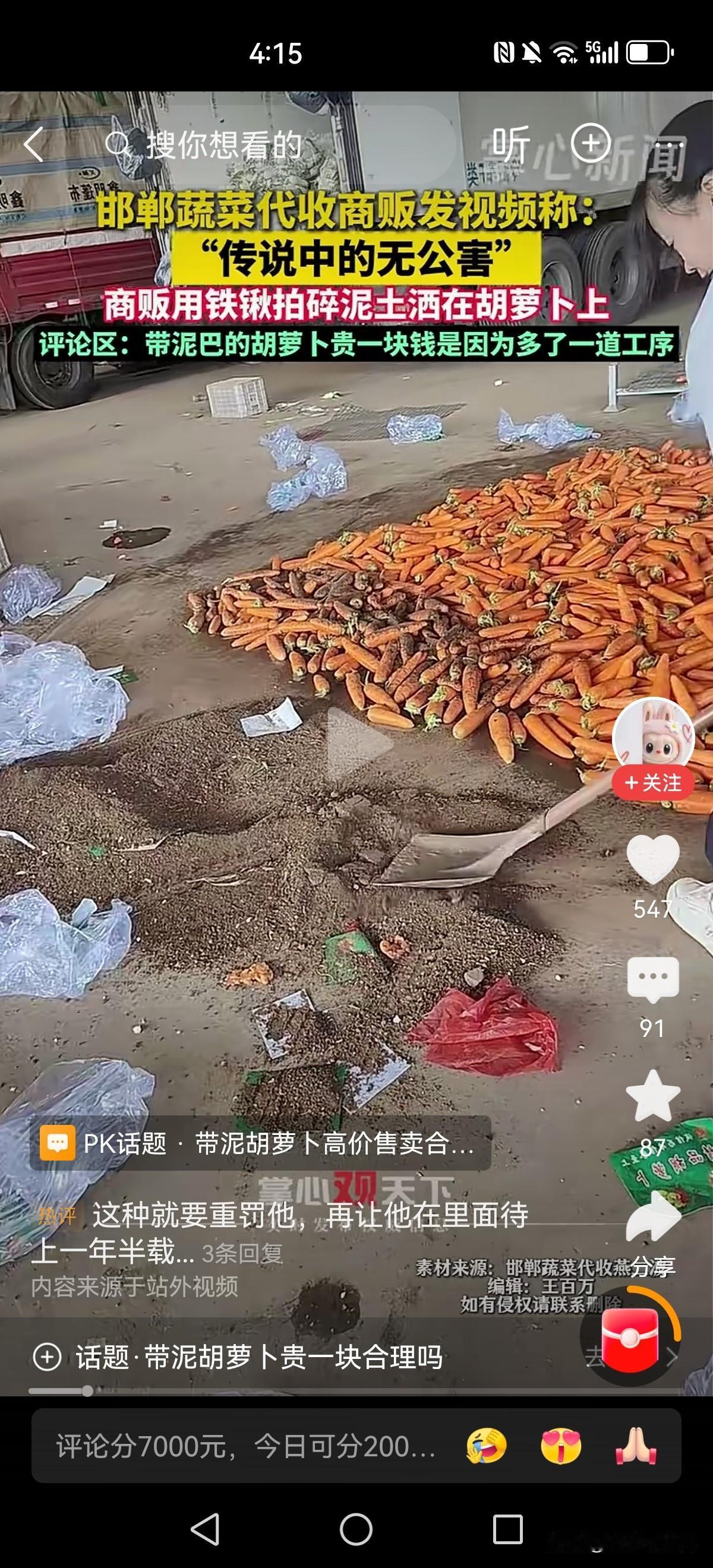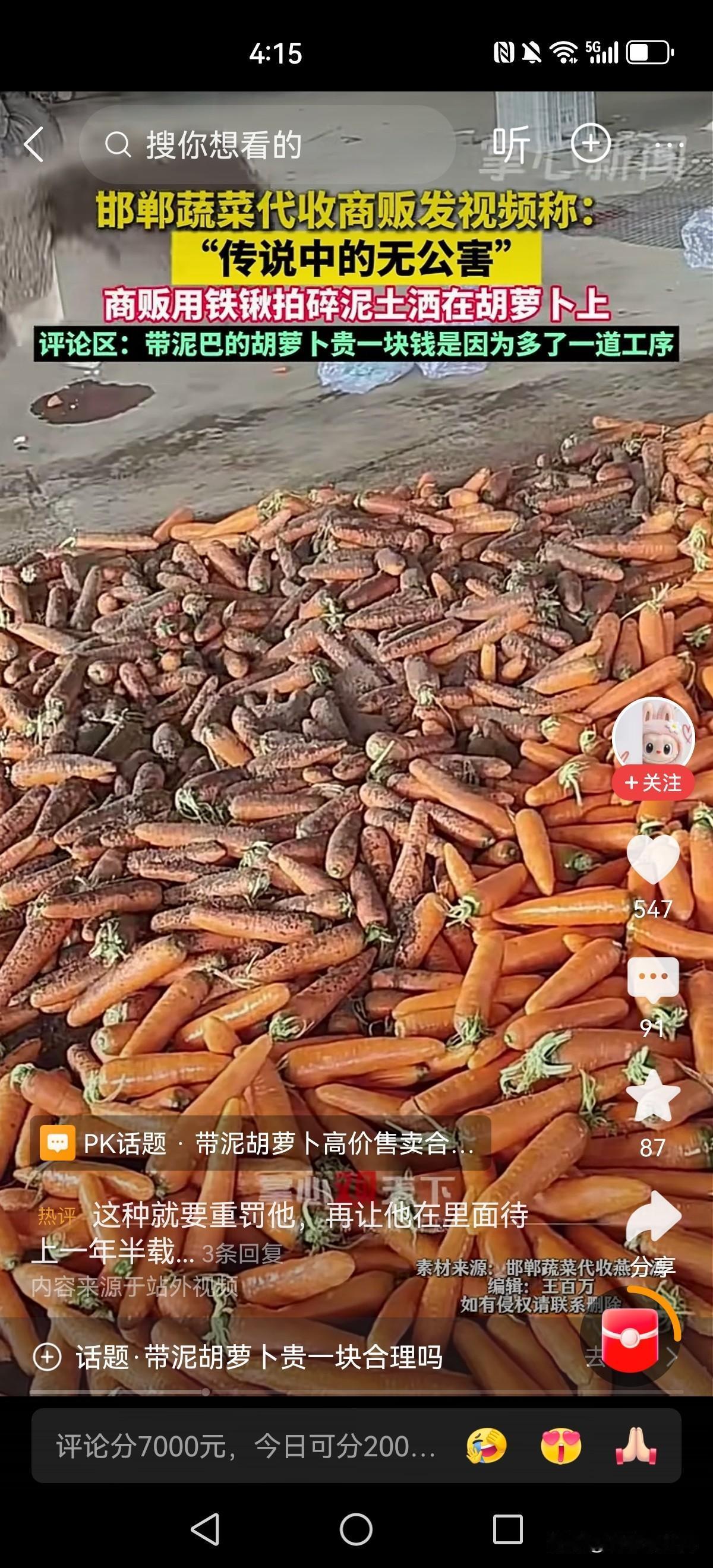 这都没人管吗?一直以为带泥胡萝卜真的是地里刚挖出来的,所以宁愿贵一点也买带泥的。 事实上竟然有这种操作,铁楸和泥土直接撒在胡萝卜上!原来带泥还可以这样操作,多了一道工序啊所以价格高! 民以食为天,吃的东西被如此糟践,良心不会痛吗?为了几个臭钱简直毫无下限,伤天害理啊!带泥巴的胡萝卜 泥巴胡萝卜 芦笋胡萝卜泥 山药菠菜泥 爪磨胡萝卜 蓝莓胡萝卜泥 紫薯胡萝卜泥