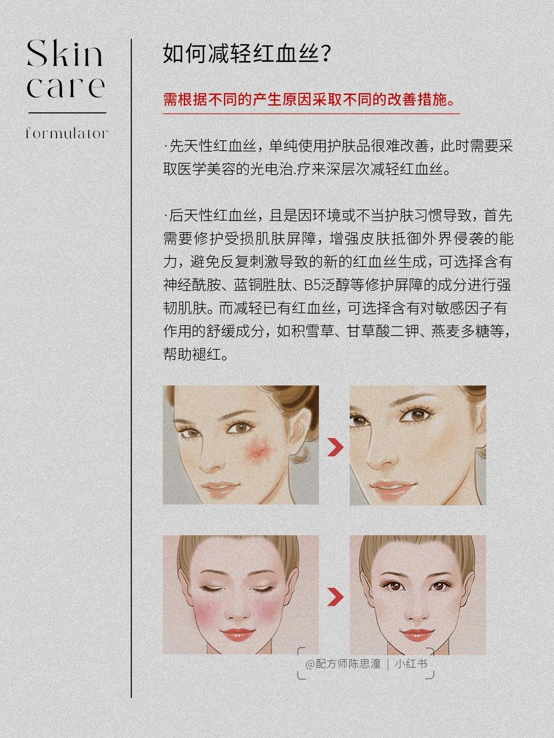 • 红血丝是什么 • 后天性红血丝的产生原因 • 如何减轻红血丝? • 红血丝的修护建议 一起来了解一下吧,下期还想看什么可以❤➕🍎告诉我哦